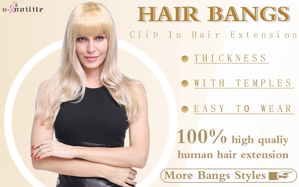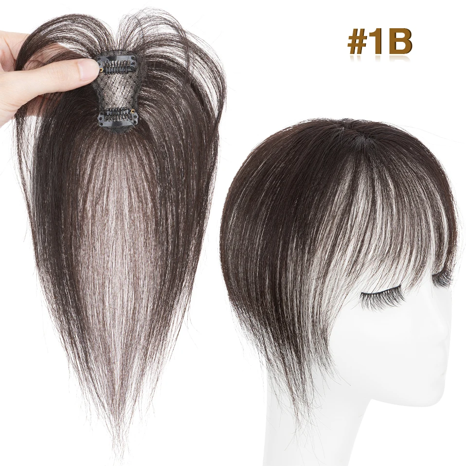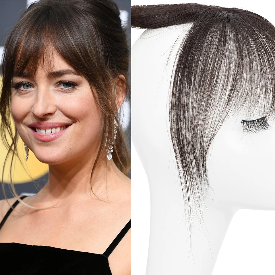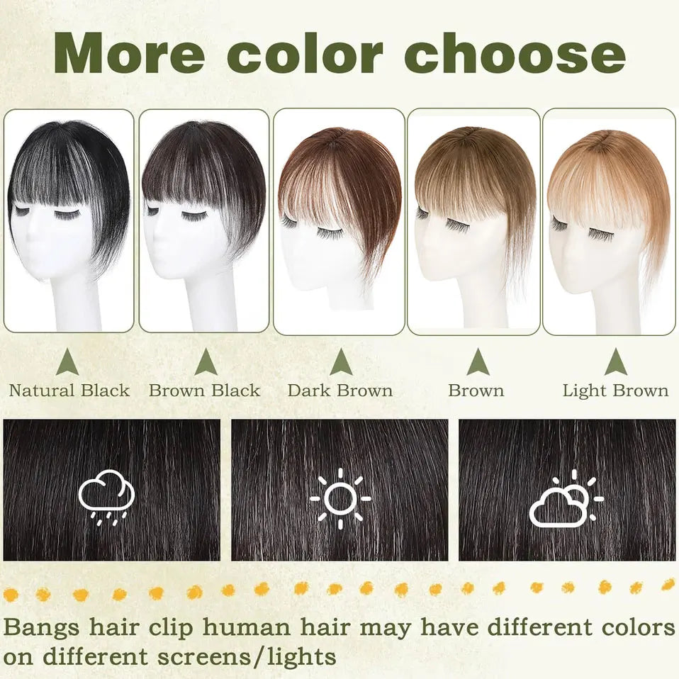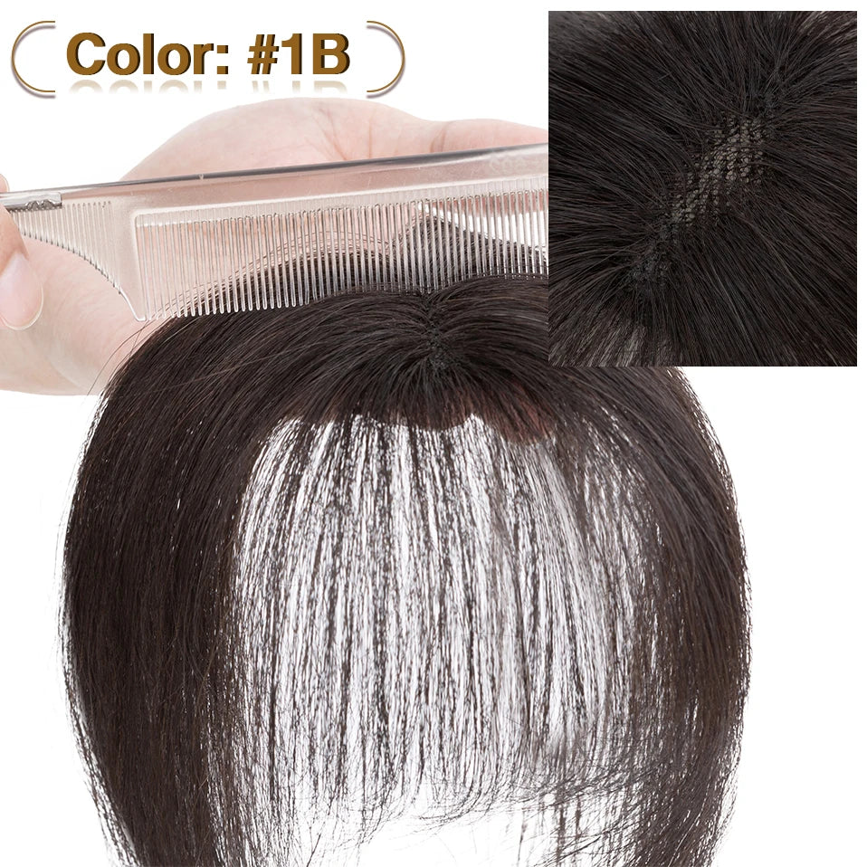 S-noilite 2.4"x3.15" Fringe Air Bang 100% Human Hair Topper Natural Hairline for Women Clip In Hairpieces 10g Light Bangs 10"
