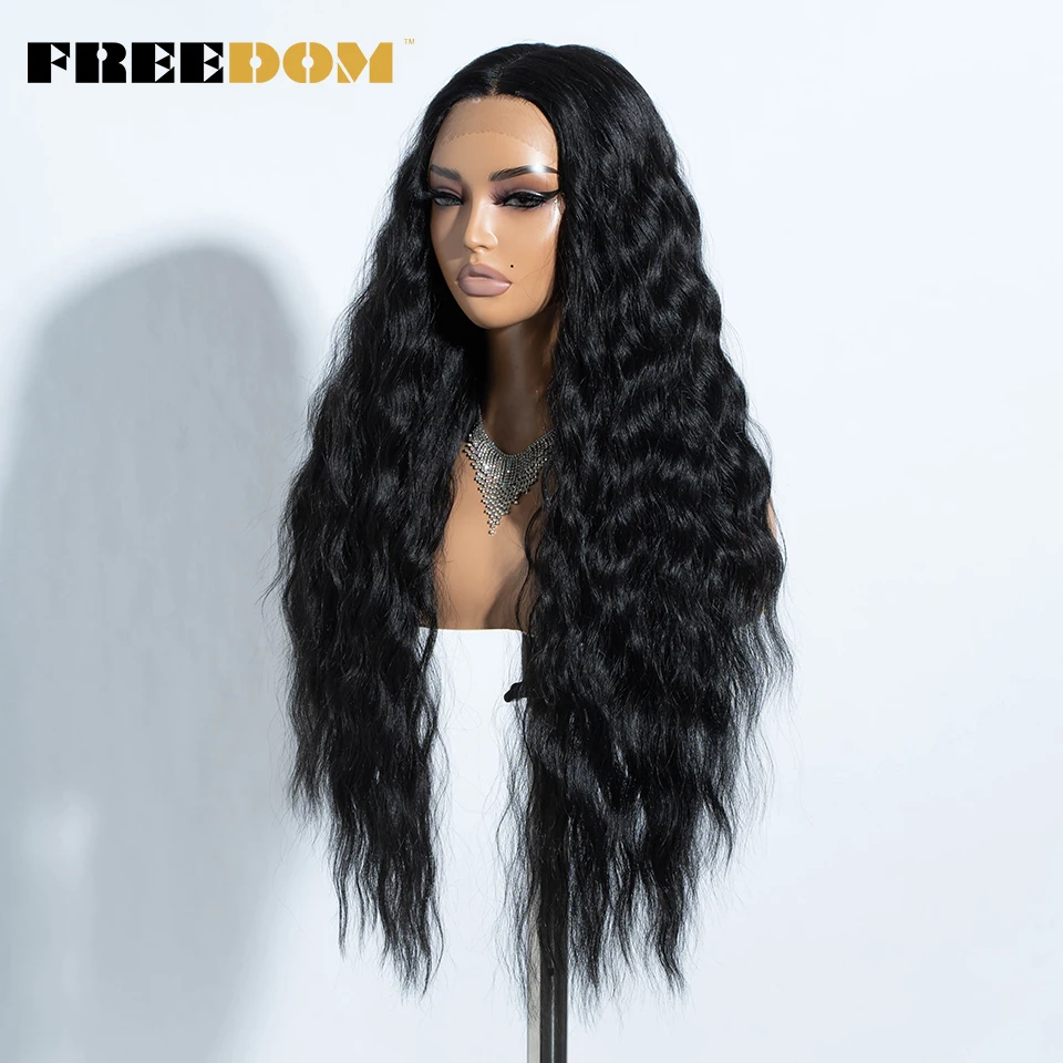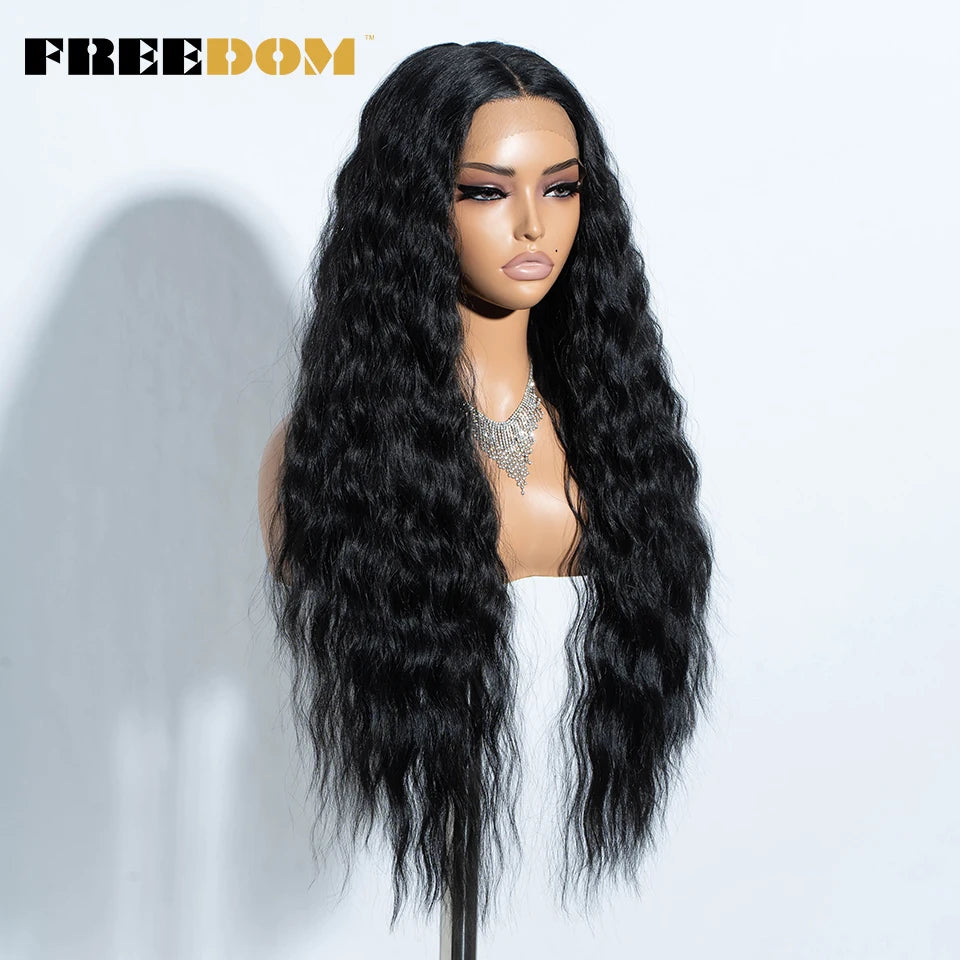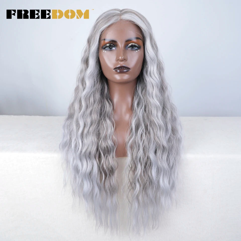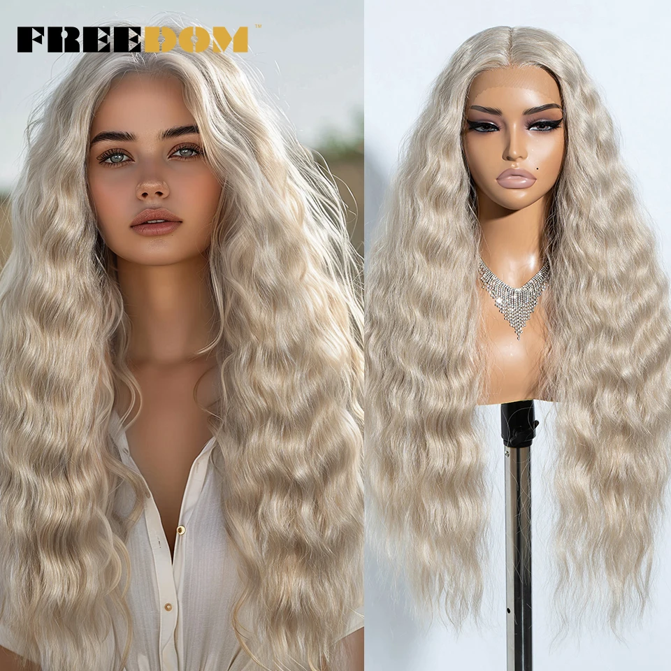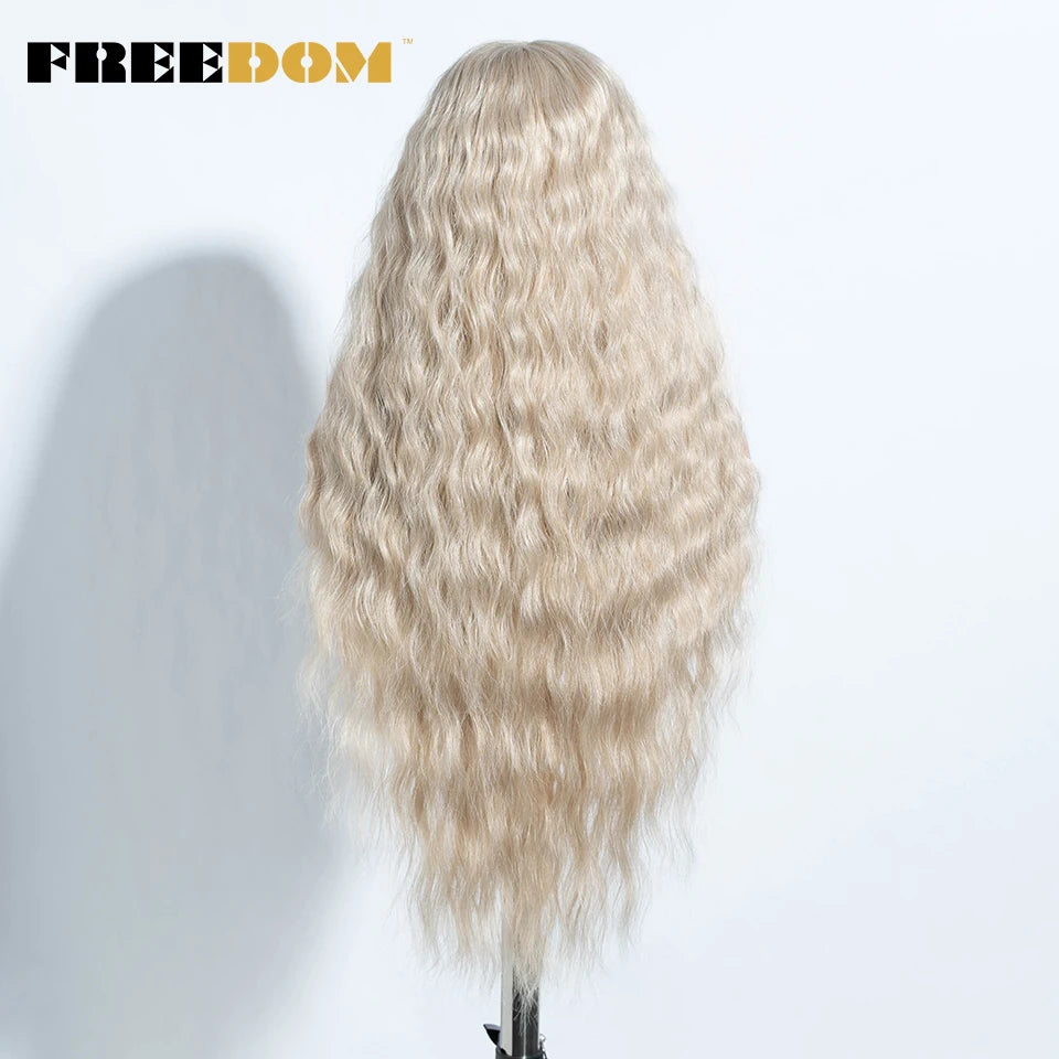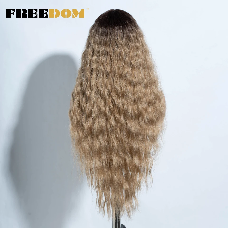 FREEDOM Curly Synthetic Lace Front Wigs For Women 30 inches Soft Wavy Ombre Blonde Ginger Highlight Cosplay Wigs Heat Resistant