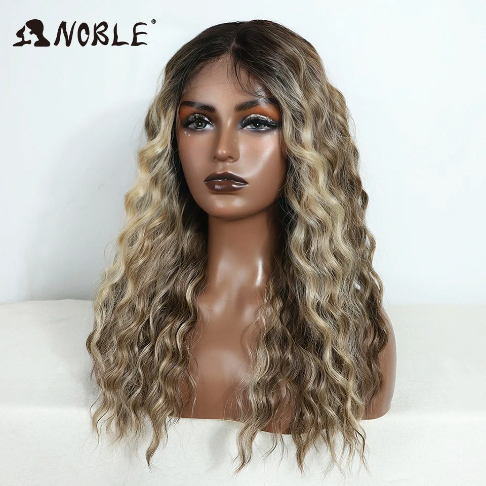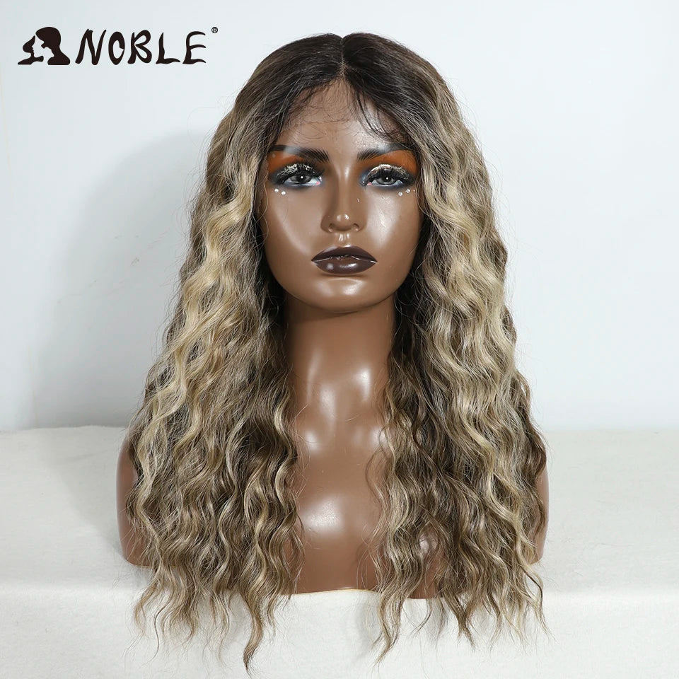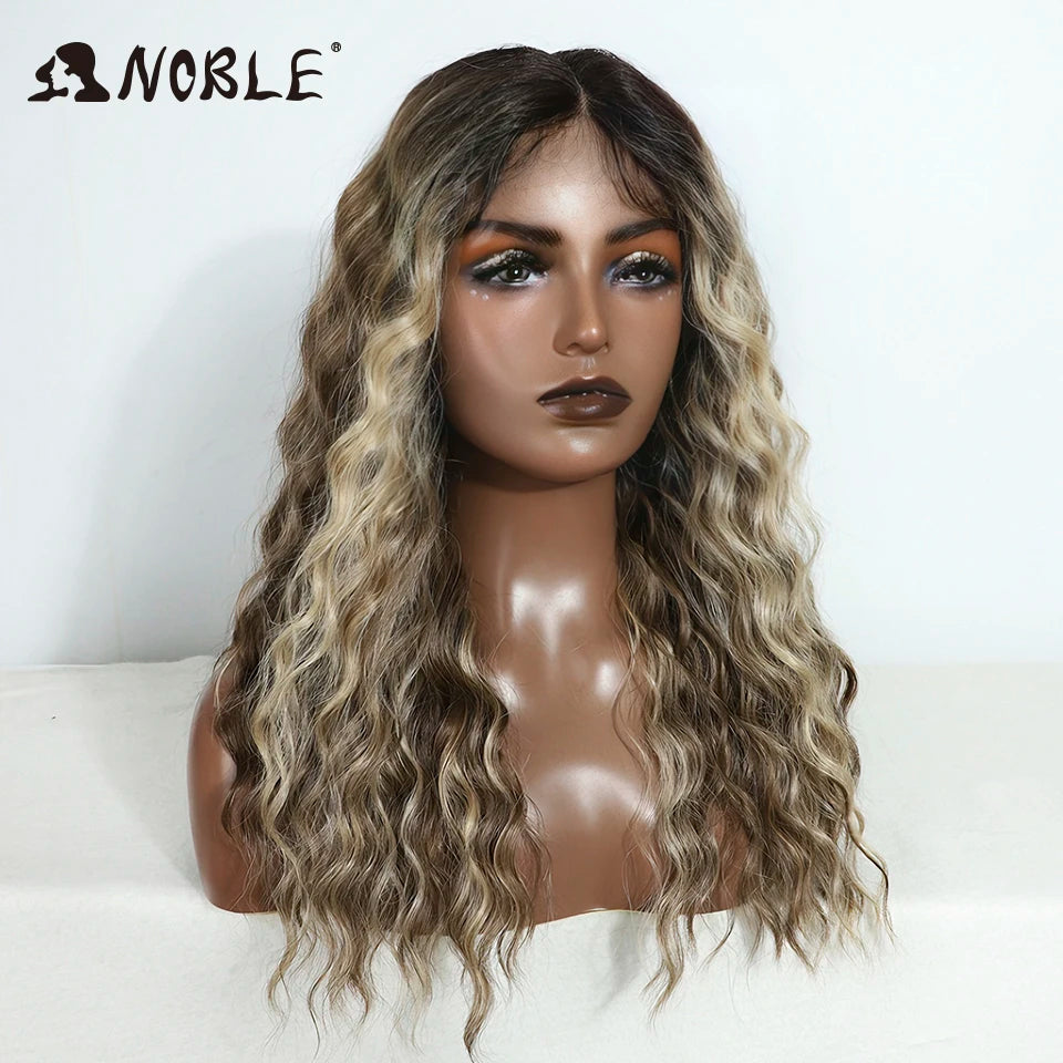 Noble Synthetic Lace Front Wig Long Curly 20 Inch Long Medium Part Lace Wig For Women Lace Front Wig Ombre Blonde Cosplay Wig