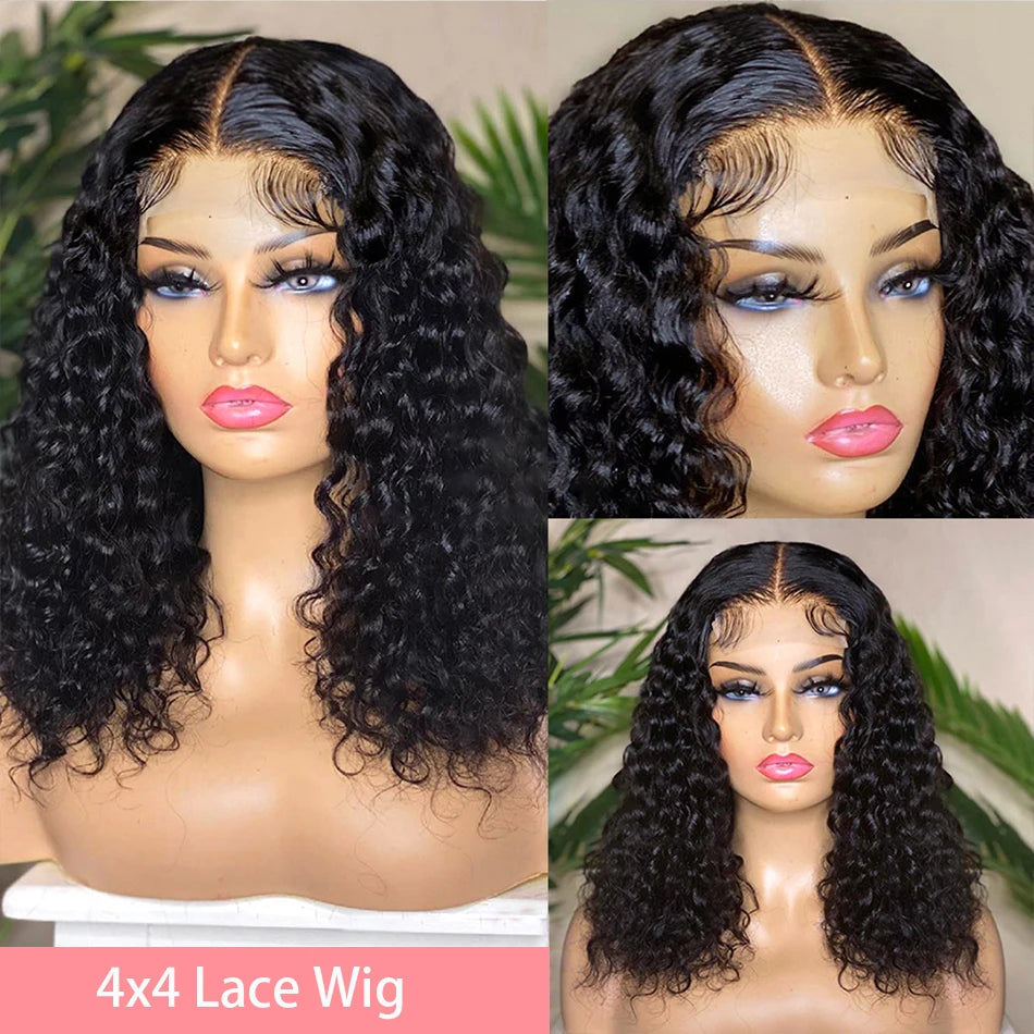 Short Curly Wigs 100% Real Human Hair Bob 10 12 14 16 Inch Deep Water Wave Lace Front Human Hair Wigs For Women Natural Color 150% 200%