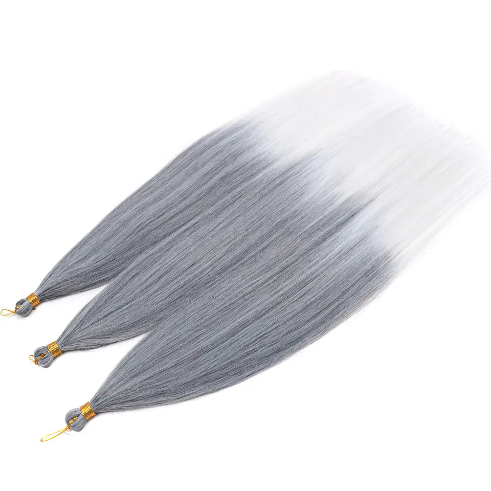 Create a stunning hairstyle with these 28-inch synthetic pony hair bundles in a trendy ombre silver grey. Designed for easy crochet braids or ponytail styles, these hair extensions are soft, lightweight, and tangle-free. Perfect for daily wear, parties, cosplay, or creative hairstyles, they add volume and a modern touch to your look. Easy to style and maintain for long-lasting use.