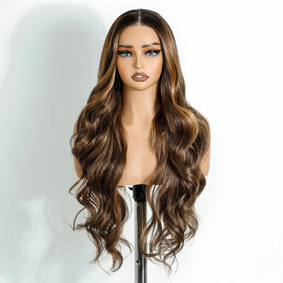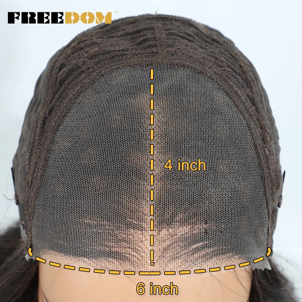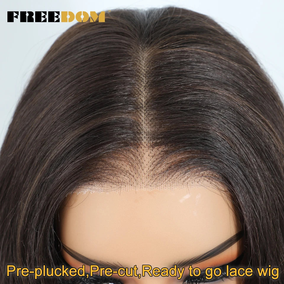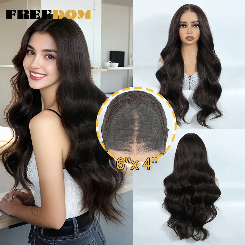FREEDOM Synthetic Lace Front Wigs For Woman Long Body Wave Lace Wig Ombre Brown 6x4 Pre Plucked Pre Cut Wear and Go Glueless Wig