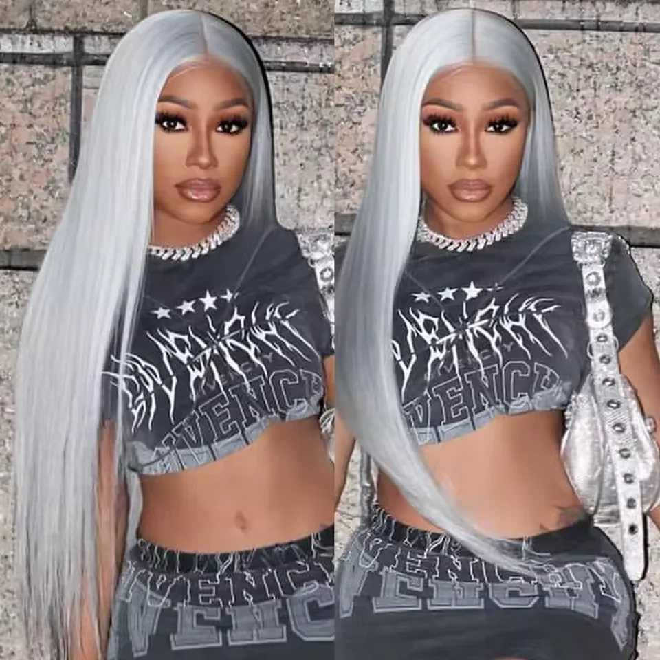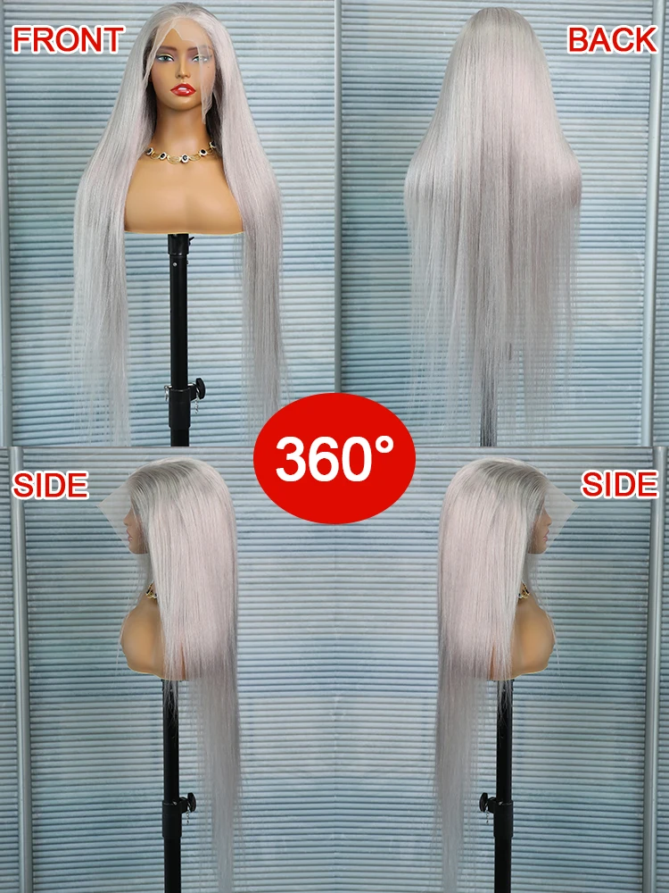 Wig Type: 30 40 Inches Straight Human Hair Wigs 13x6 HD Lace Frontal Wigs 250% Density Silver Grey Colored 13x4 Lace Front Human Hair Wigs