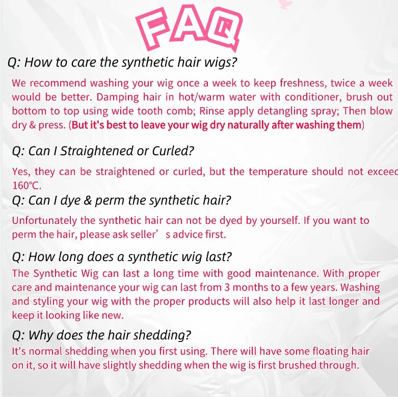 • Wig Material: Soft & Smooth Heat Resistant Synthetic Fiber Hair Up to 320°F