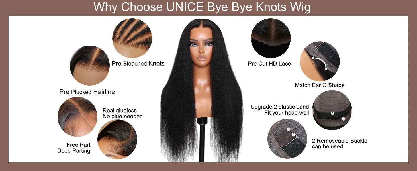 UNice Hair Pre Everything 7x5 13x4 Yaki Straight Wig Pre Plucked Pre Cut Pre Bleached Glueless Wig Human Hair Ready To Wear 150%