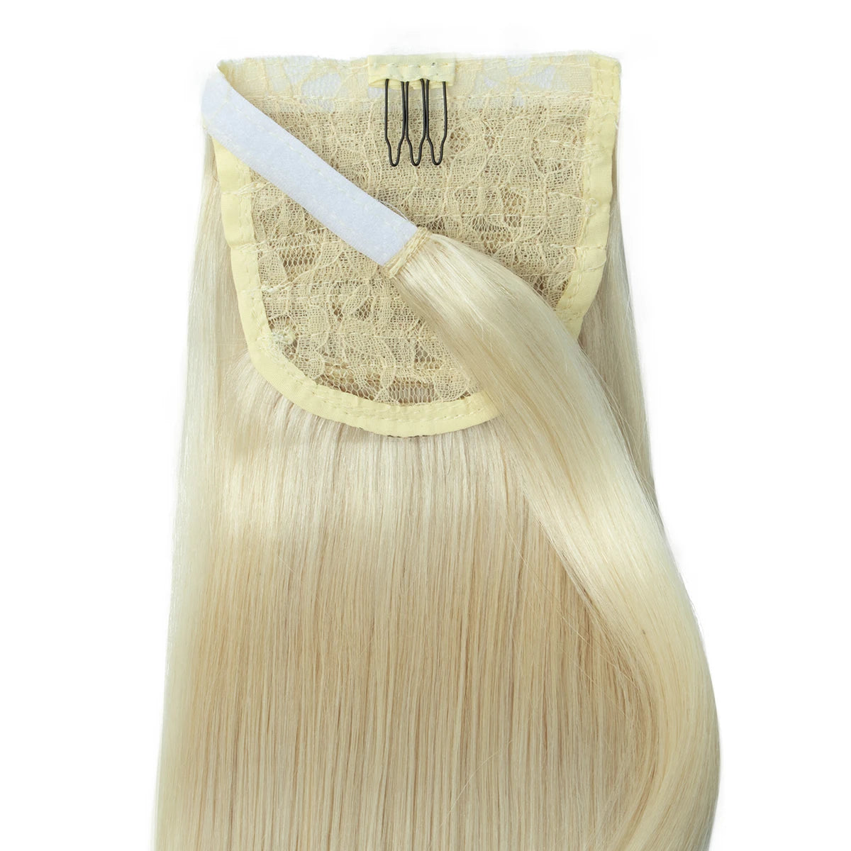 3. Hold the velcro strap and pull it under the ponytail.Secure the velcro and continue wrapping the long strap around the ponytail to cover the band.