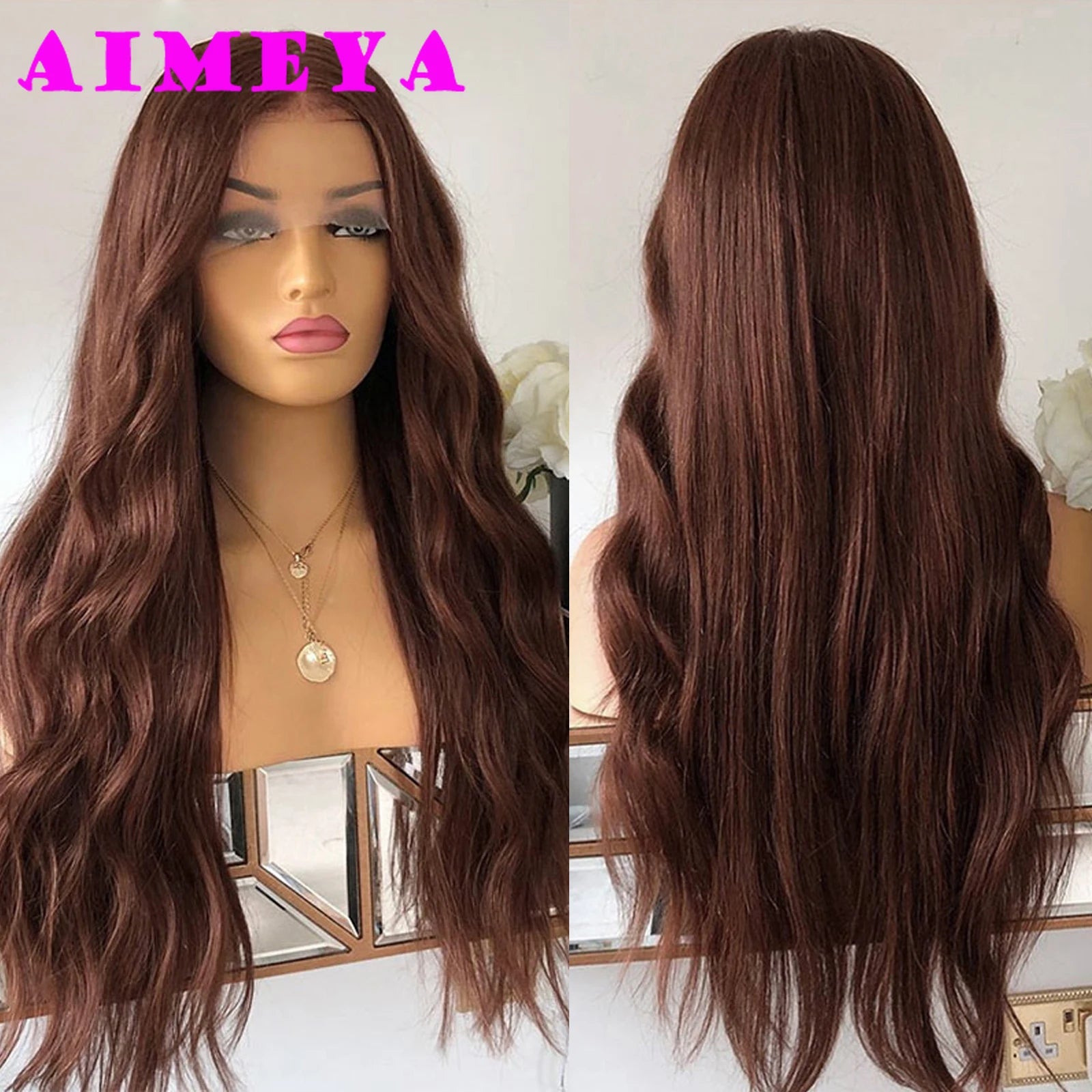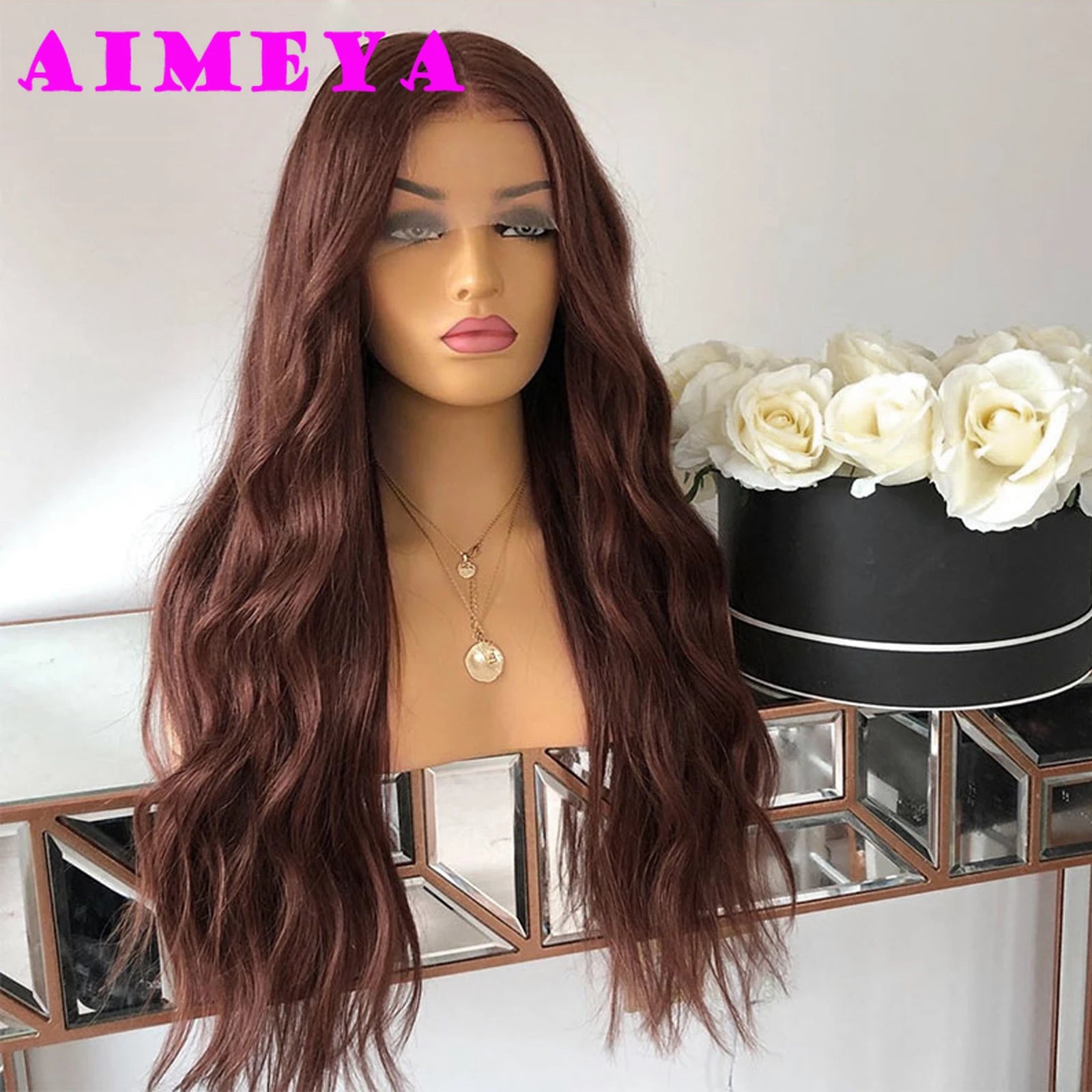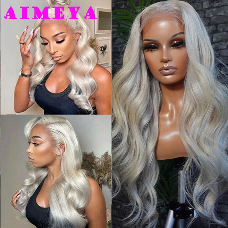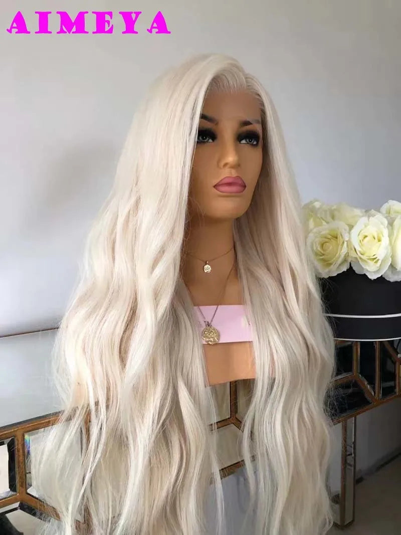 AIMEYA Platinum Blonde Lace Front Wigs for Women Long Natural Wave Synthetic Hair Heat Resistant Fiber Hair Free Part