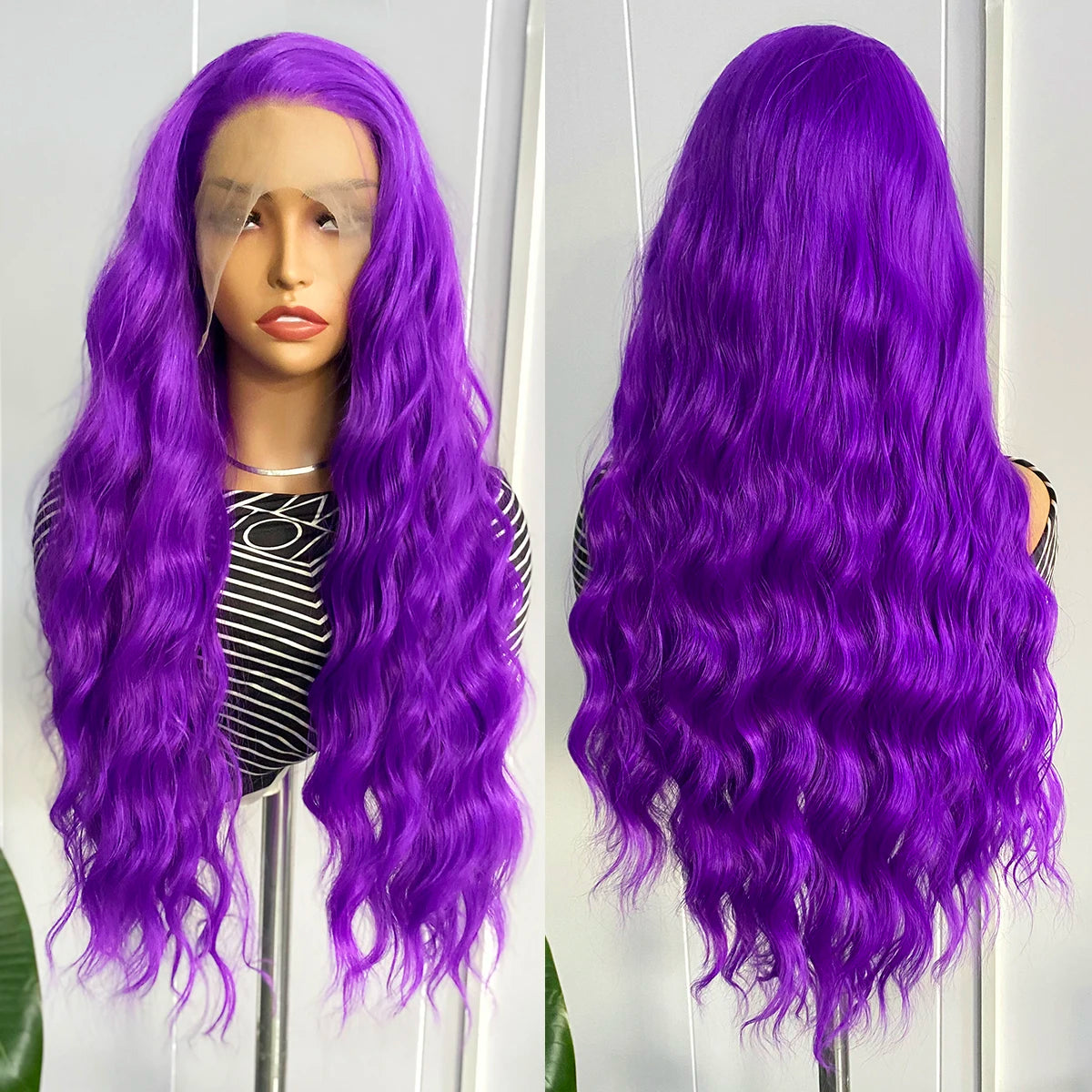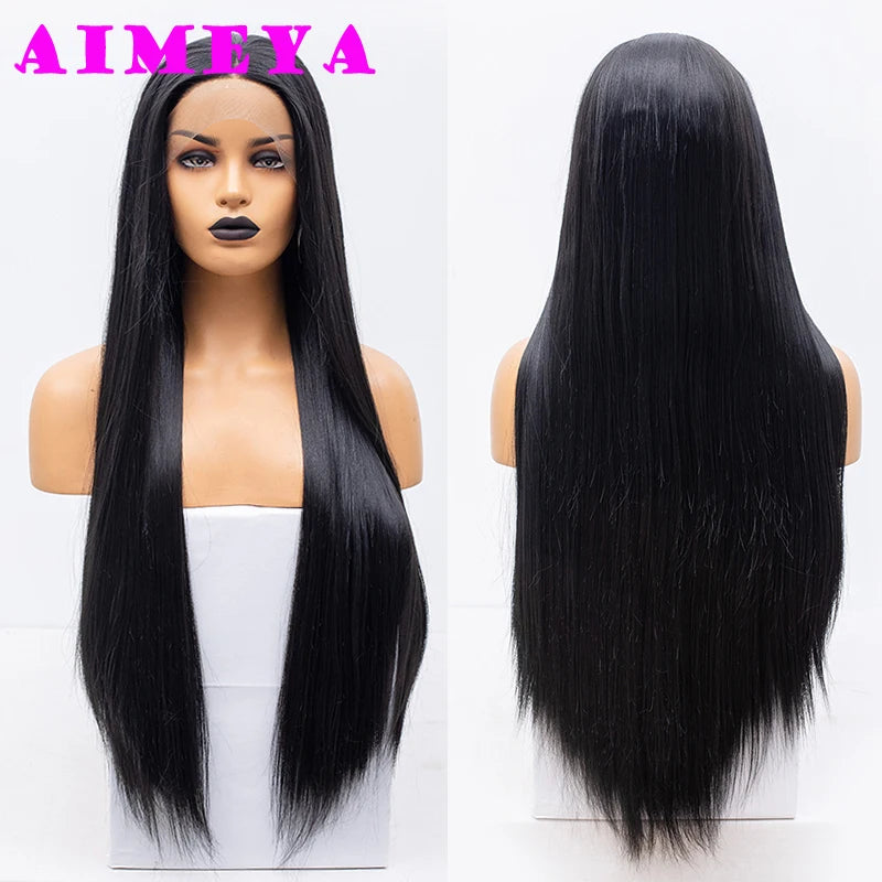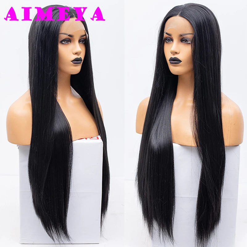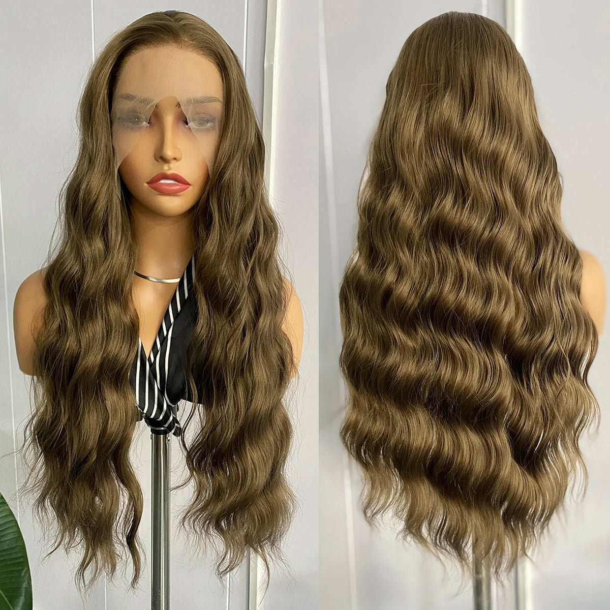 AIMEYA Platinum Blonde Lace Front Wigs for Women Long Natural Wave Synthetic Hair Heat Resistant Fiber Hair Free Part