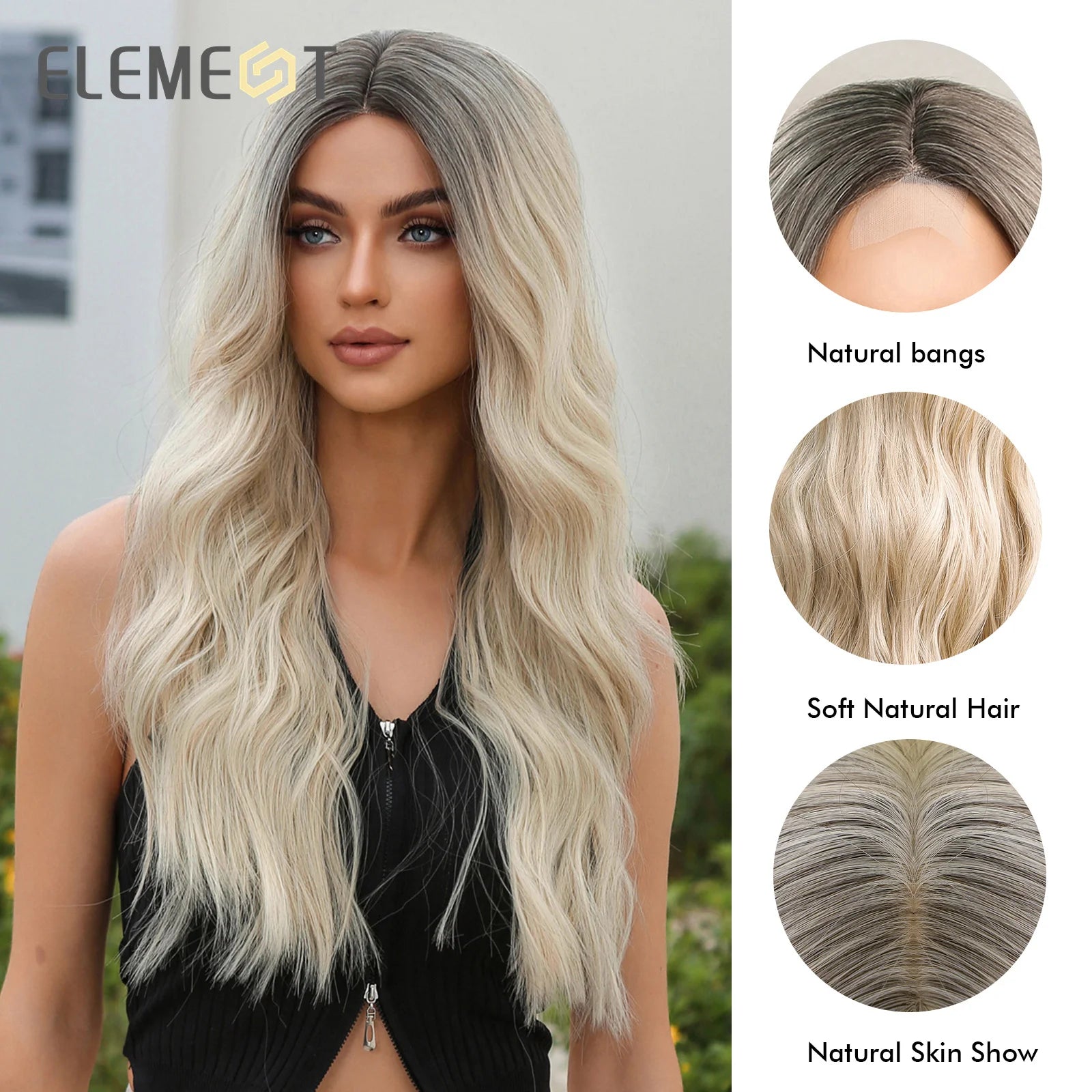 ELEMENT™ Elegant Ombre Lace Front Wig – Long Curly & Wavy Synthetic Hair, White to Blonde