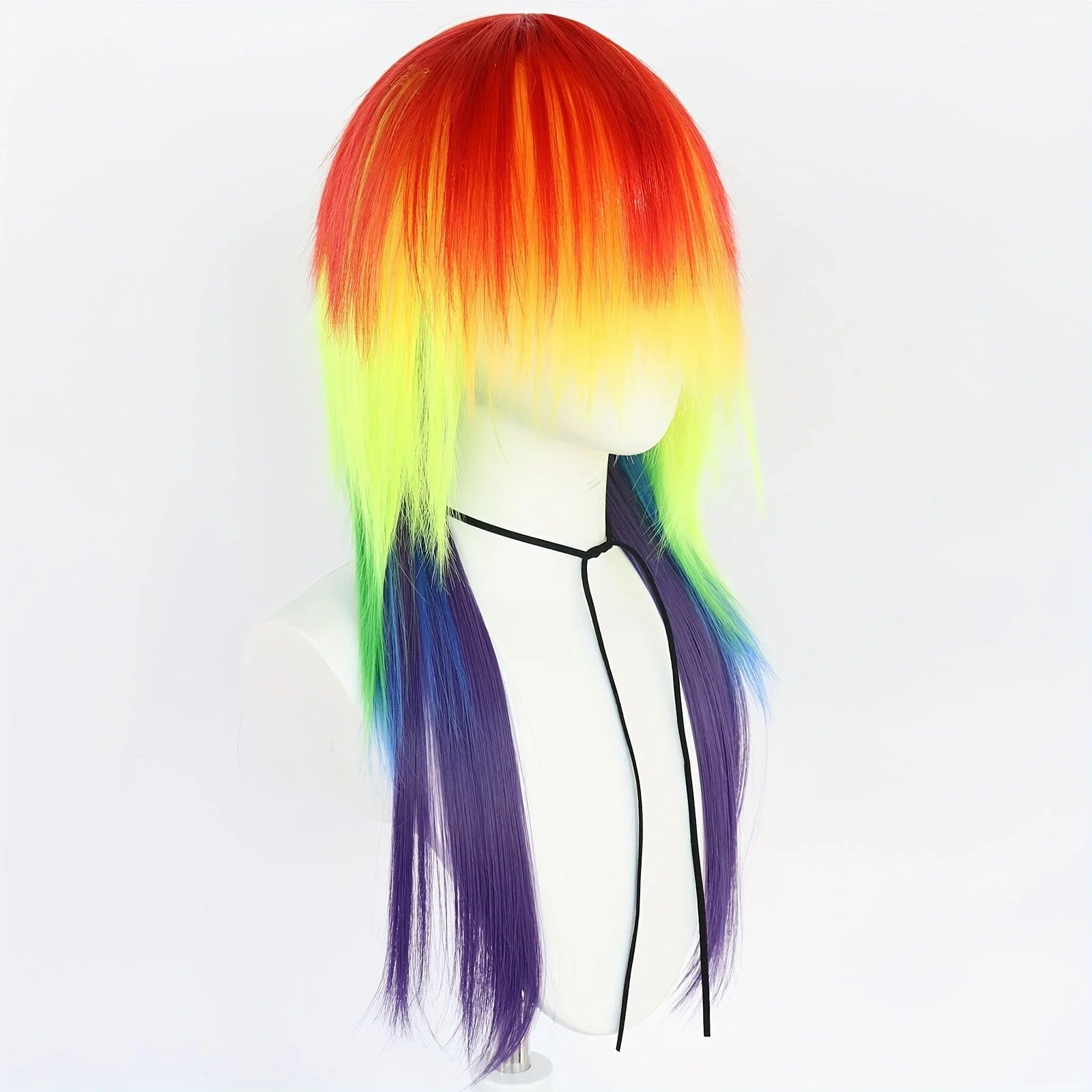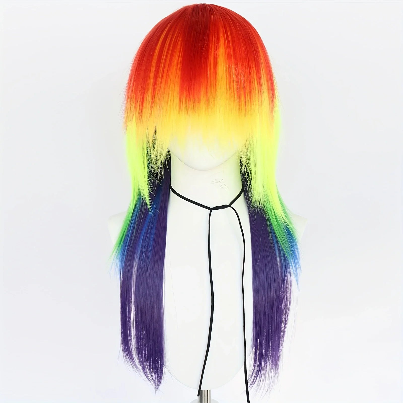 Rainbow Dash Cosplay Long Straight Rainbow Synthetic Cosplay Wig for Halloween Christmas School Thanksgiving Day