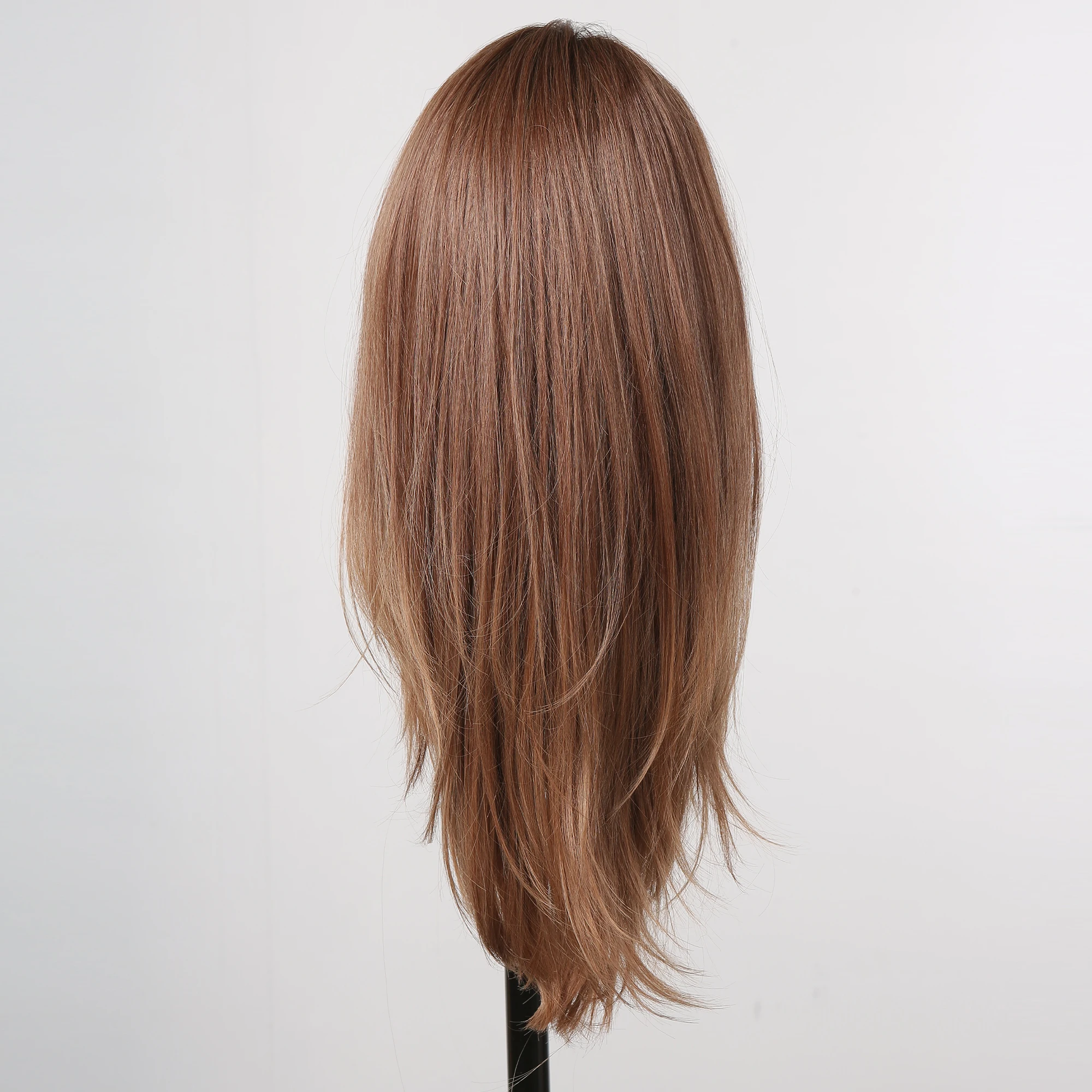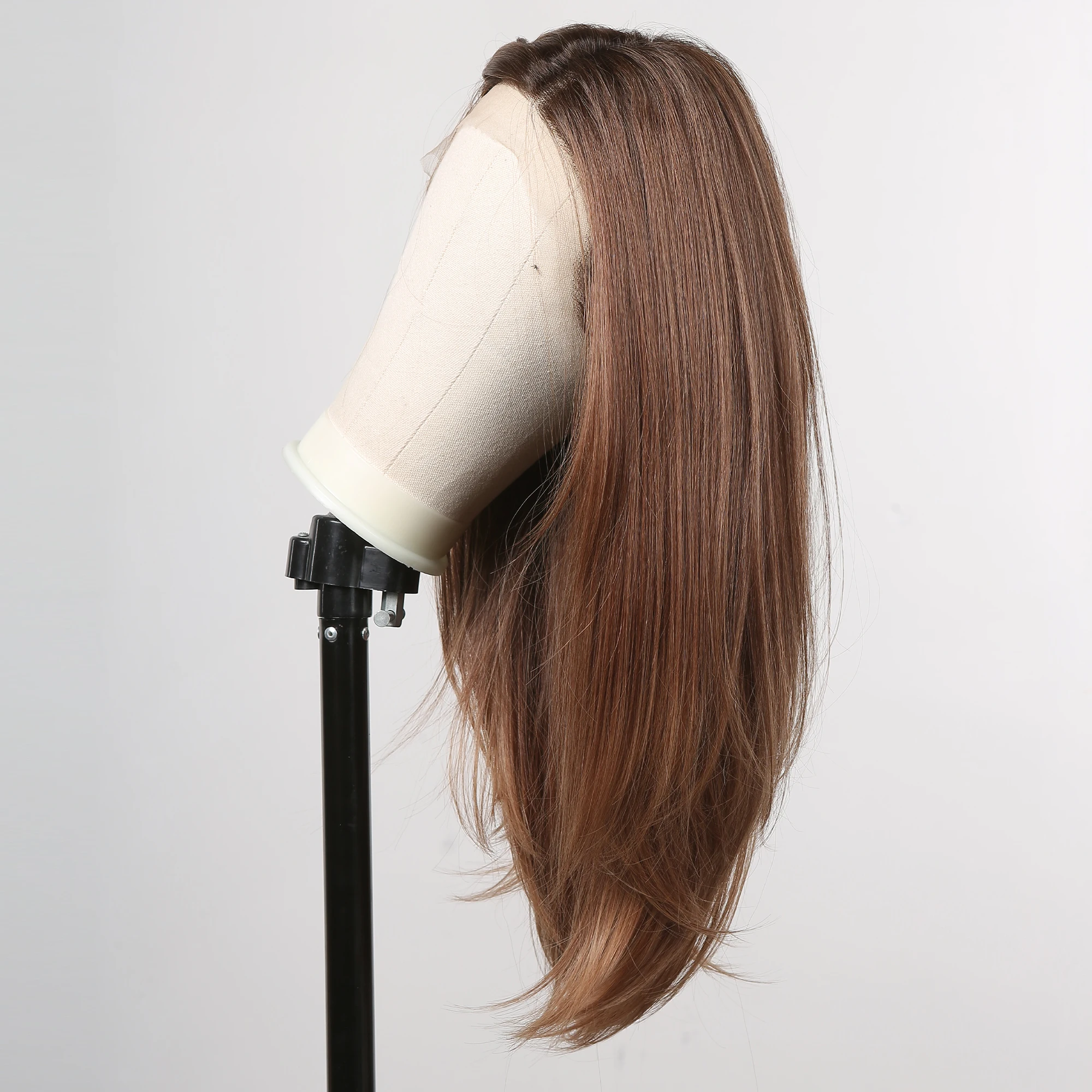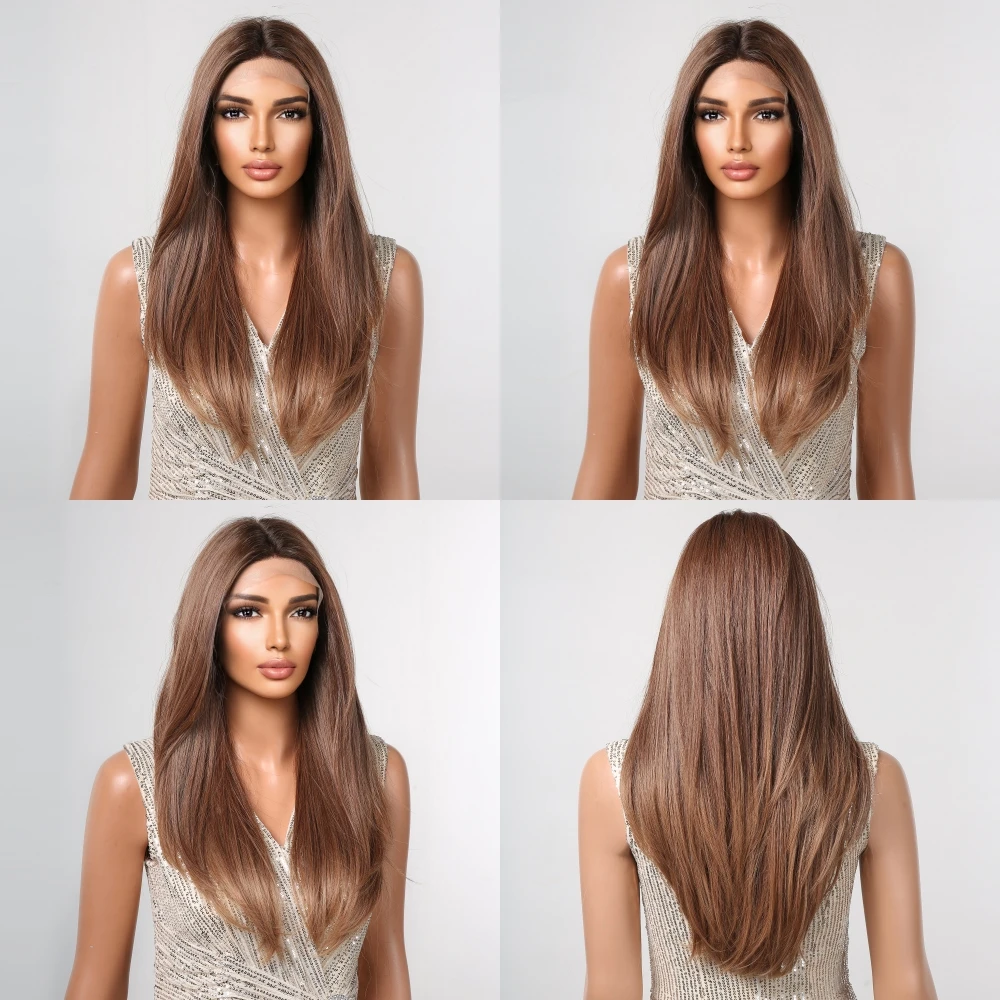 13x1 Lace Front Synthetic Wigs for Black Women Long Layered Straight Brown Lace Wig for Daily Party Cosplay Heat Resistant Fiber