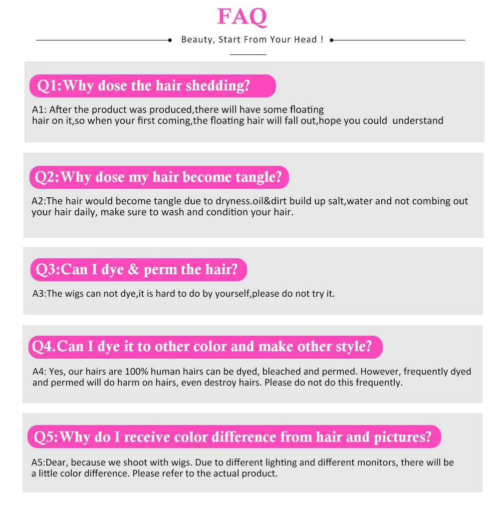 Raw Materials: 100% Brazilian Remy Hair