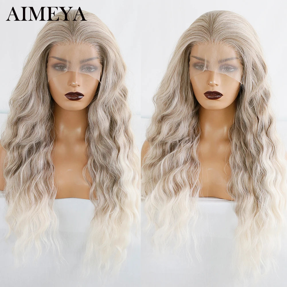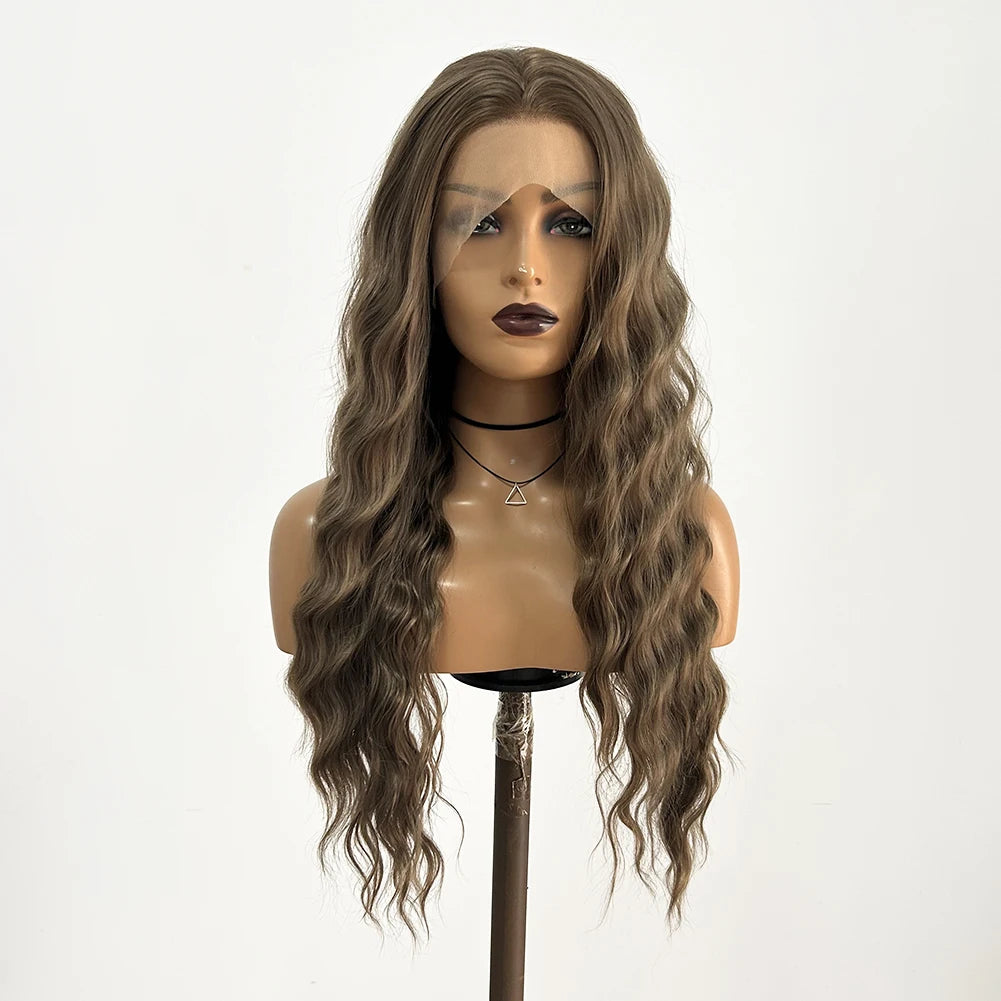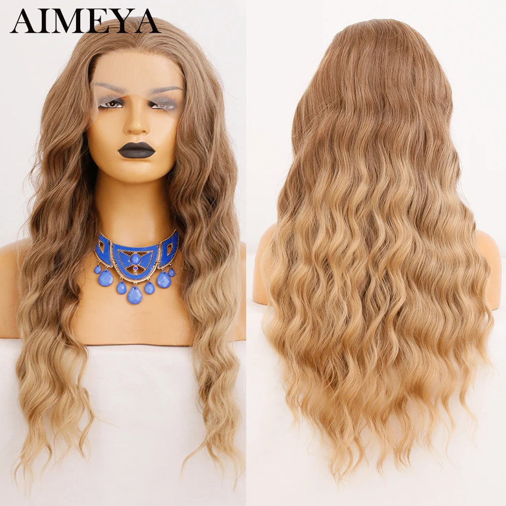 AIMEYA Synthetic Lace Front Wigs for Women Natural Hairline Synthetic Hair Lace Wig Long Brown Wig Pre Plucked Baby Hair Cosplay