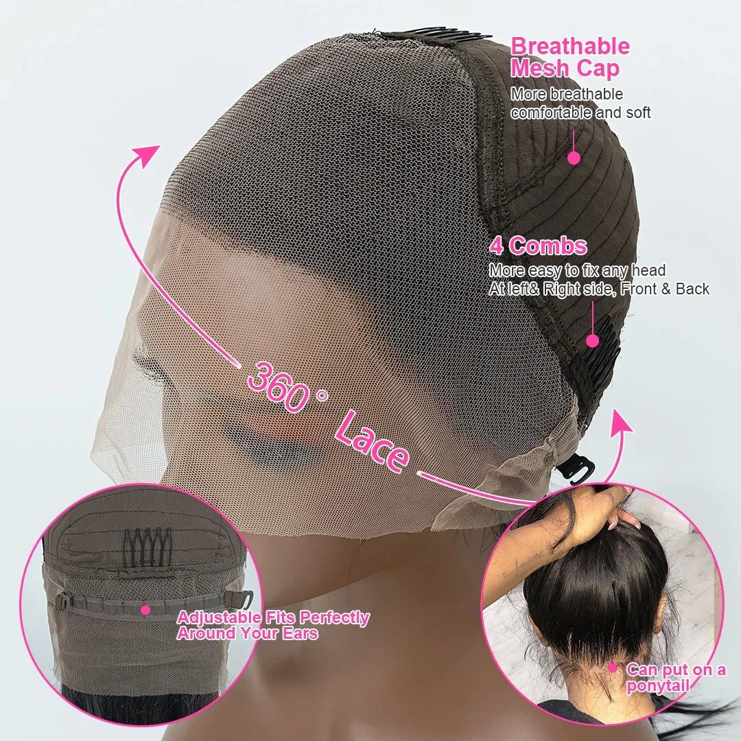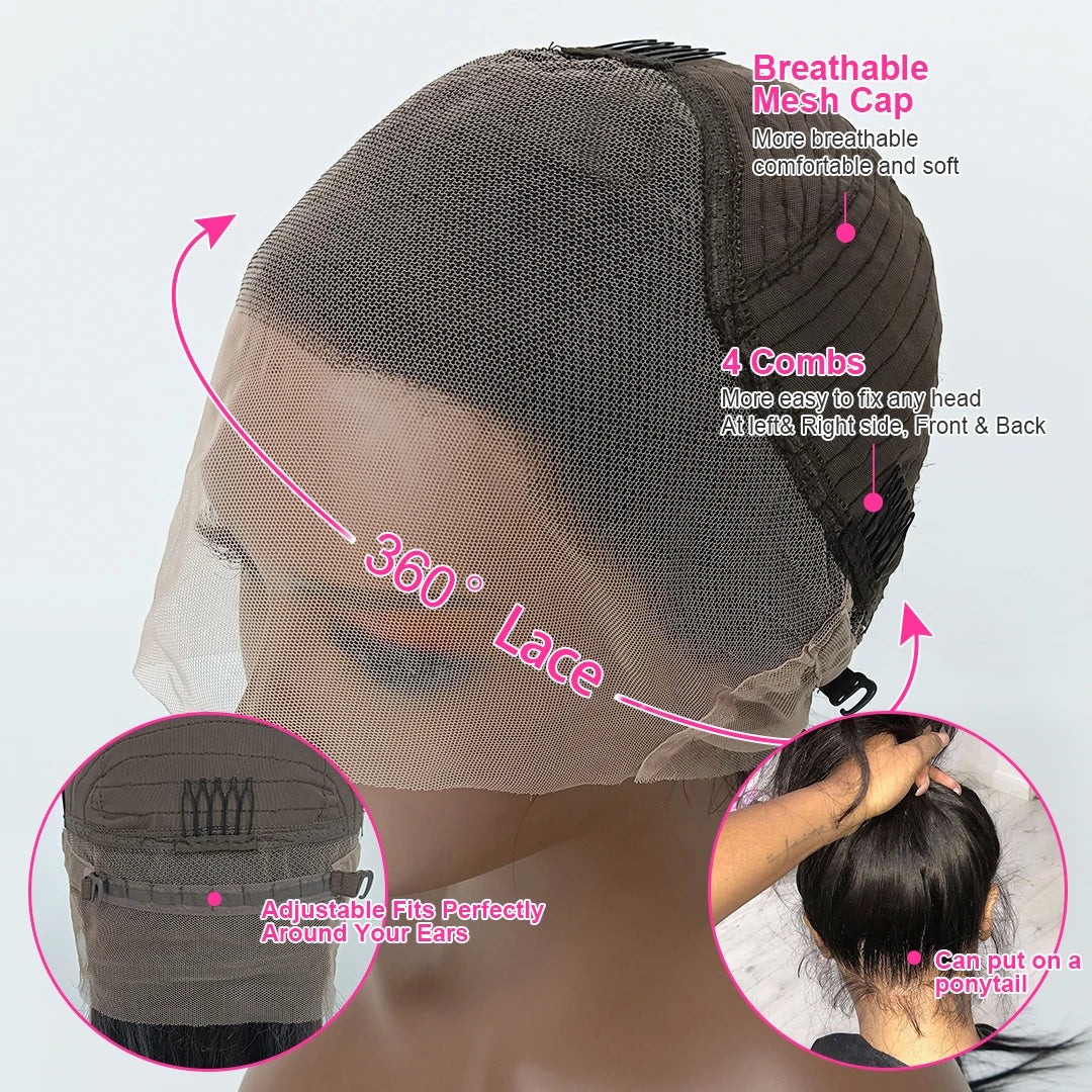 • 360 Lace Front Design: The innovative 360 lace front construction seamlessly blends the wig with your hairline, providing a undetectable, flawless appearance from every angle.