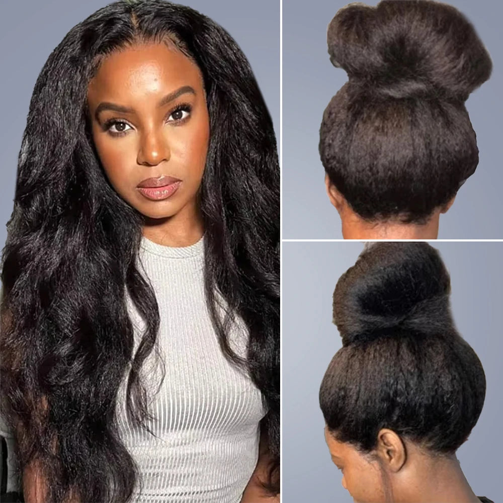 • Kinky Straight Texture: Crafted with premium human hair, this wig boasts a striking kinky straight texture that exudes natural movement and versatility.