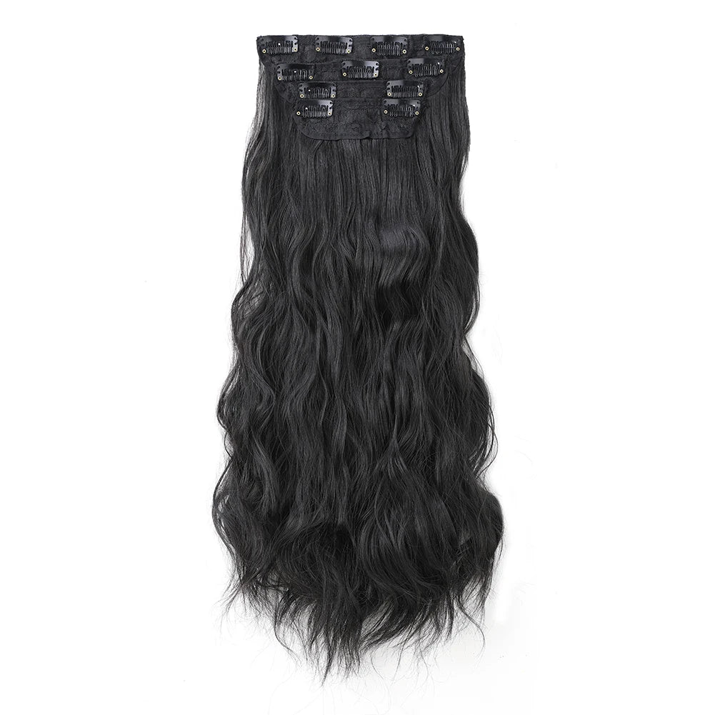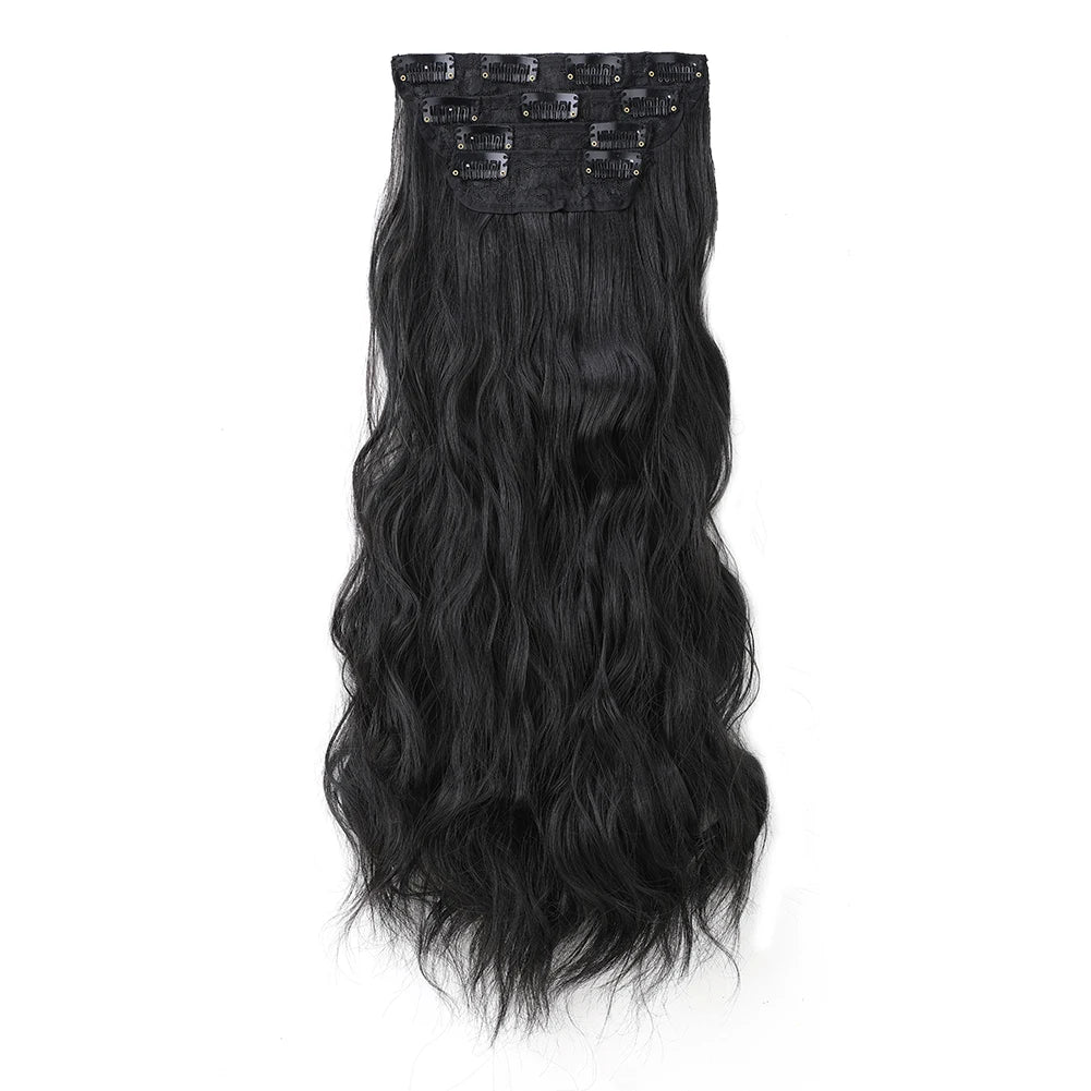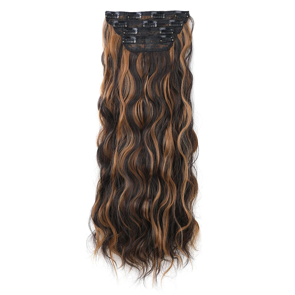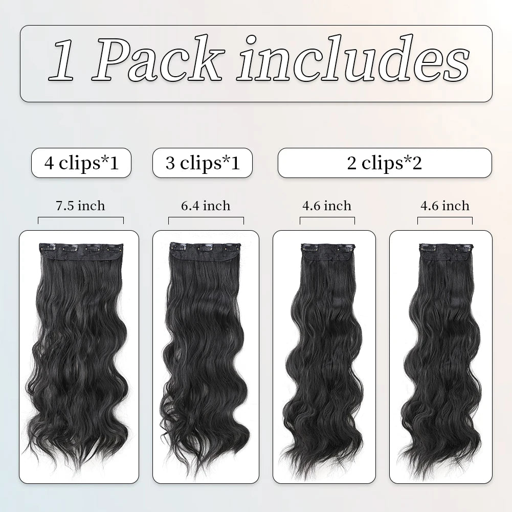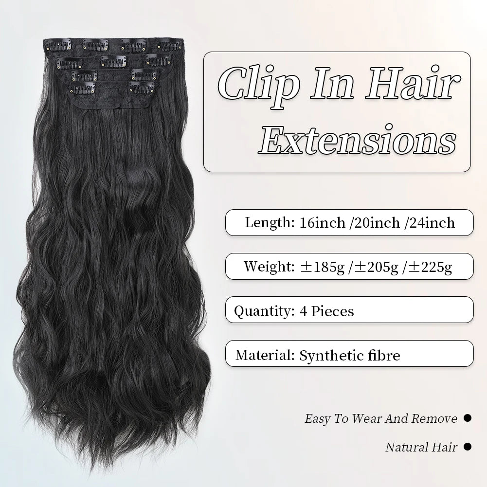 Clip in Long Wavy Synthetic Hair Extension 16/20/24 Inch 4PCS to Hairpieces Fiber Thick Double Weft Hair Extension for Women