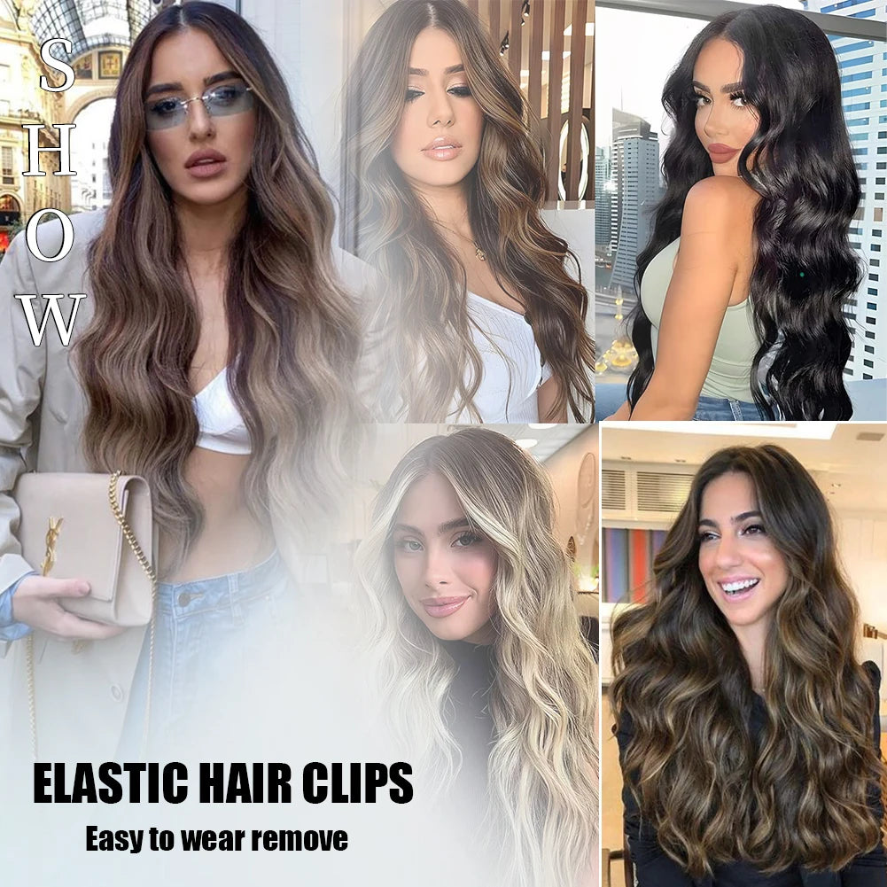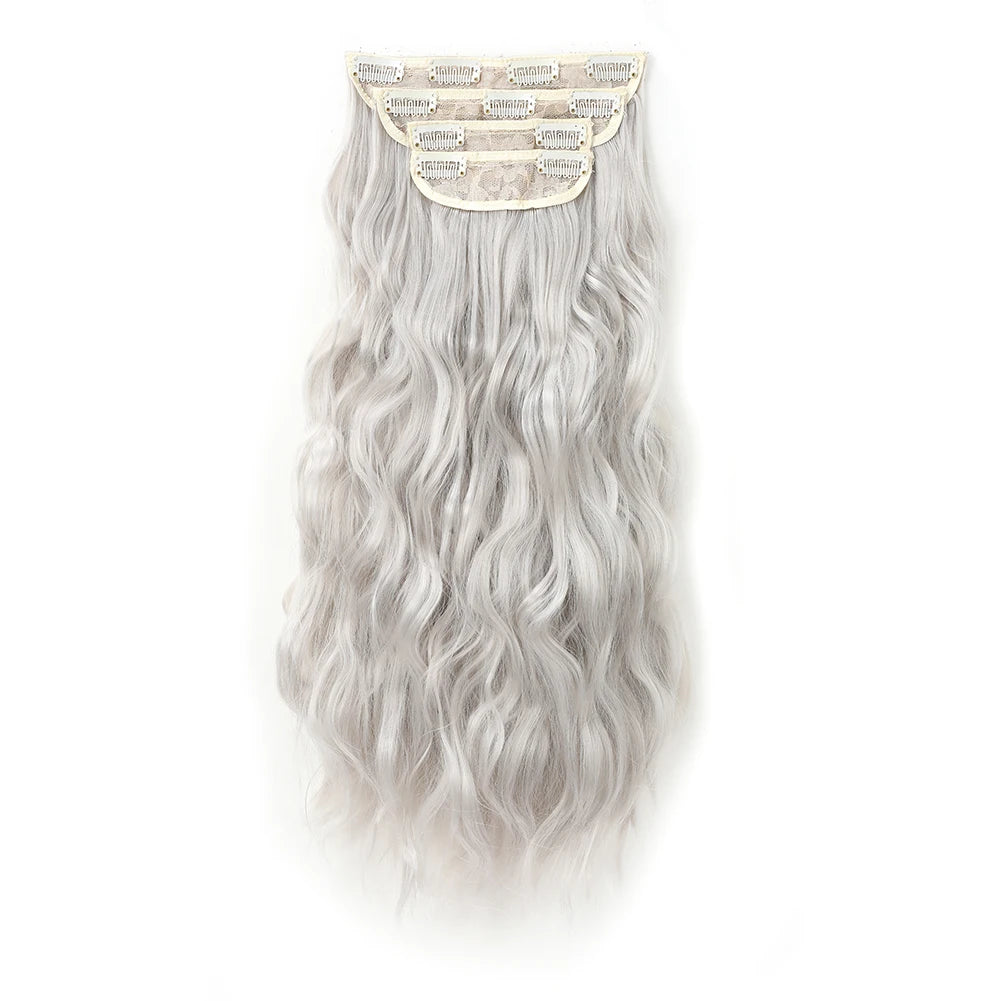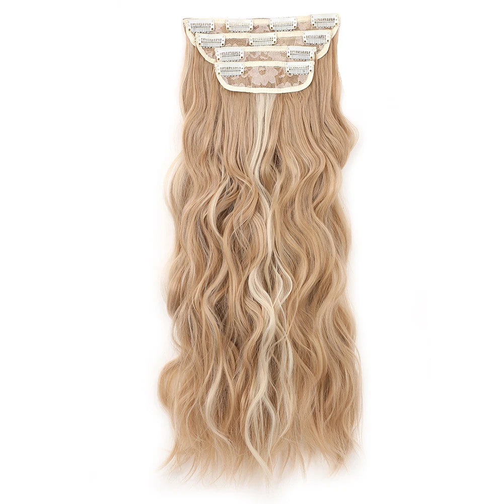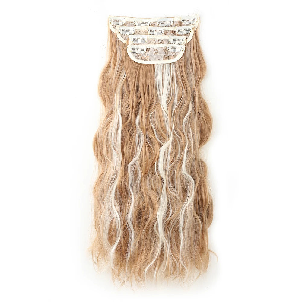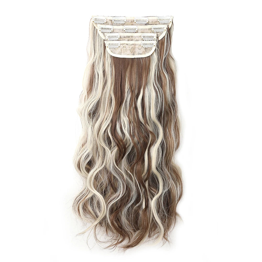 Clip in Long Wavy Synthetic Hair Extension 16/20/24 Inch 4PCS to Hairpieces Fiber Thick Double Weft Hair Extension for Women