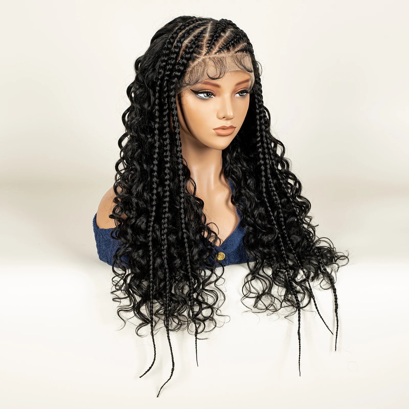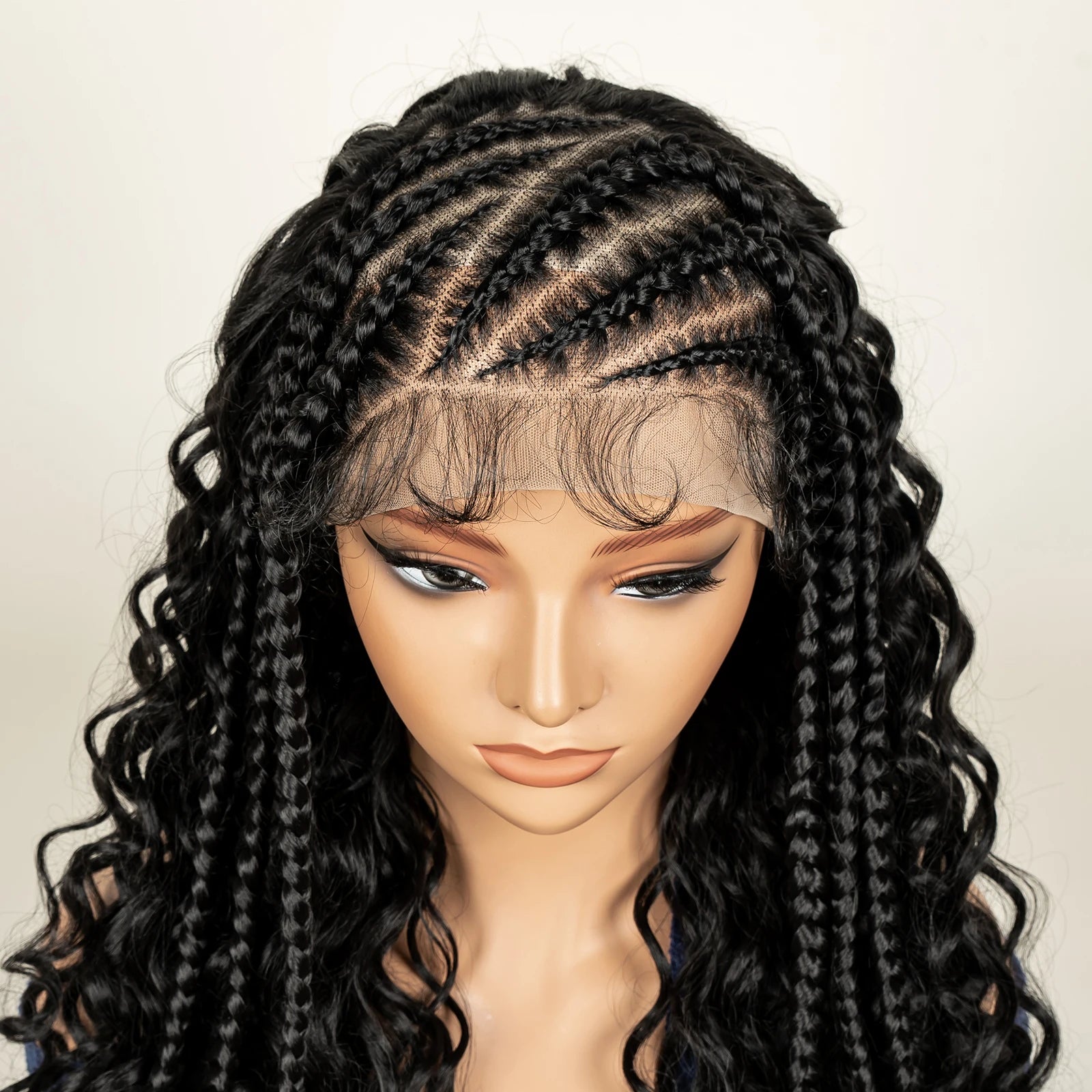 Fits Black WomenHalf Cornrow Braided Curly Hair Wig Transparent 13x6 Lace Frontal Deep Wave Synthetic Hair Wig with Baby Hair