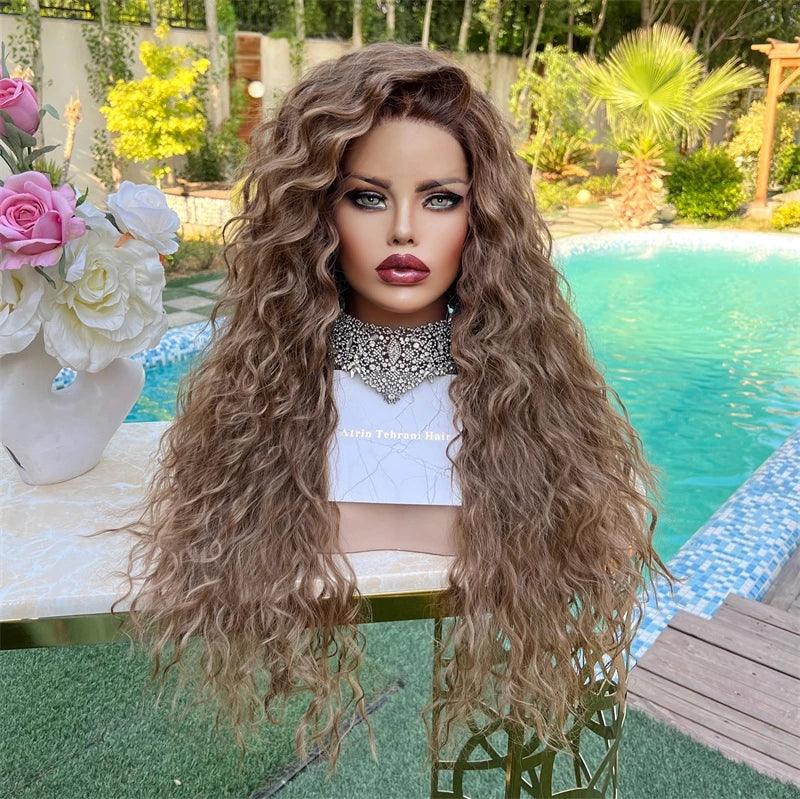 Upgrade your look with this Ombre Blonde–Brown Curly Wig, designed from premium heat-resistant synthetic fiber. The soft curls and 28-inch length give a bold, stylish appearance, while the HD lace front with a pre-plucked hairline ensures a natural finish. With adjustable small or large cap sizes, it offers a comfortable fit for any occasion. Perfect for parties, cosplay, fashion shoots, or daily wear.