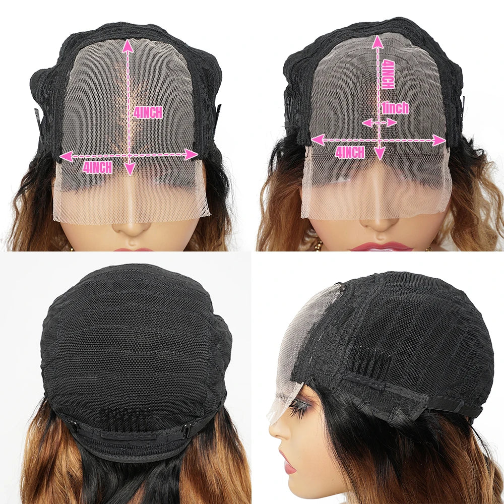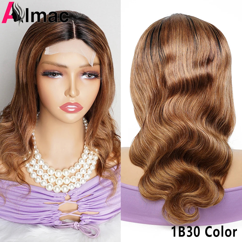 Ombre Honey Blonde Body Wave Closure Wig Indian Remy Human Hair 4x1 T Part Transparent Lace Wig 1B27/30 Color Pre-Plucked Almac
