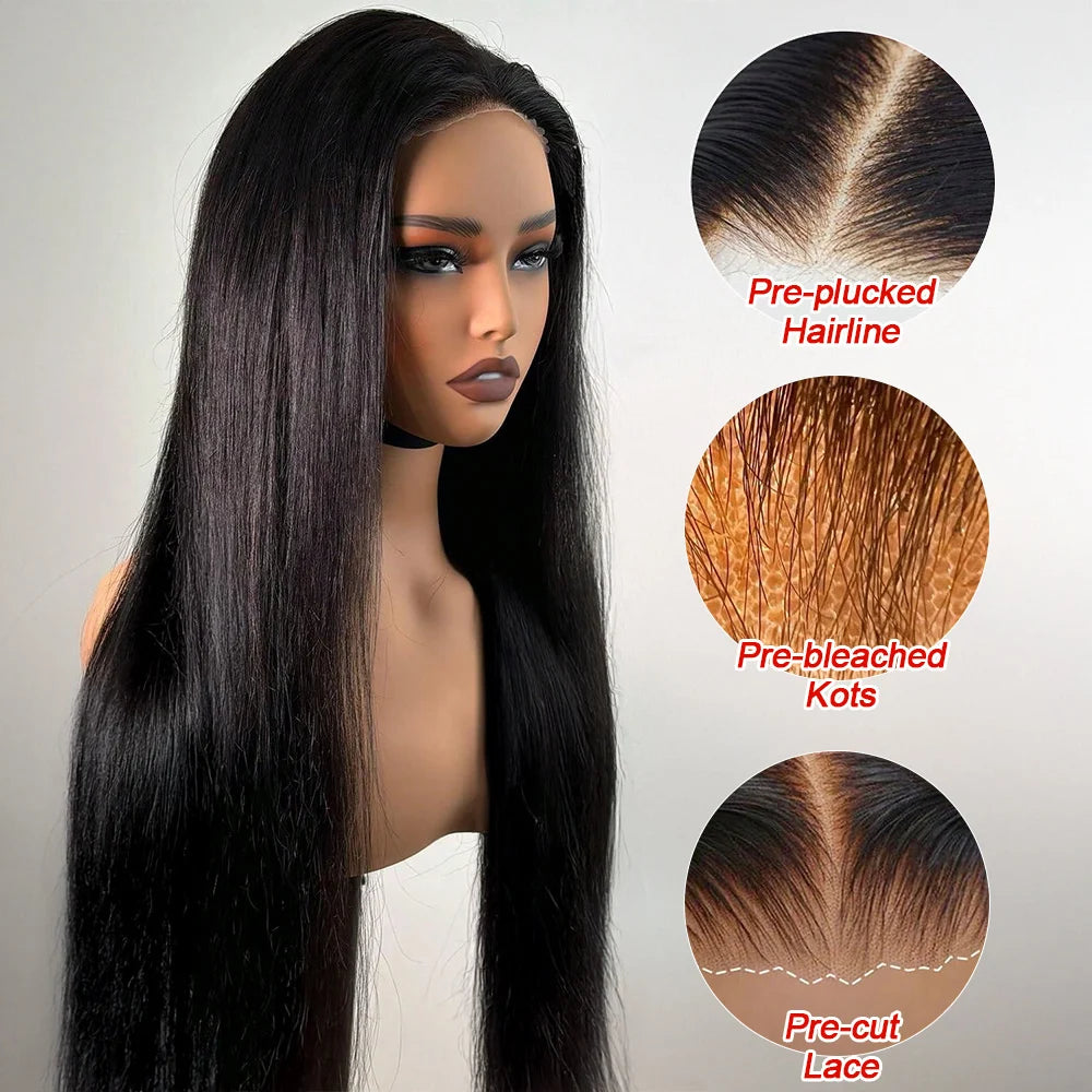 Queen Nala 360 Lace Frontal Straight Human Hair Wigs 30 40 Inch Glueless 7x5 13x4 Human Hair Wigs Ready To Wear Pre Plucked 200%