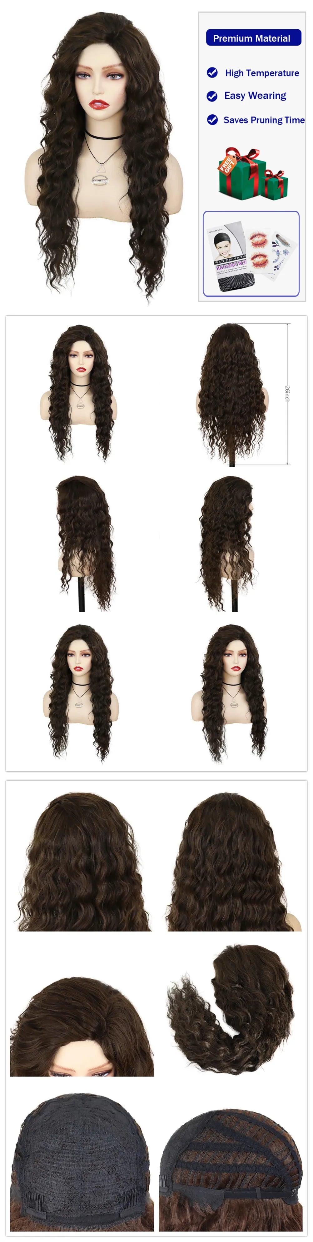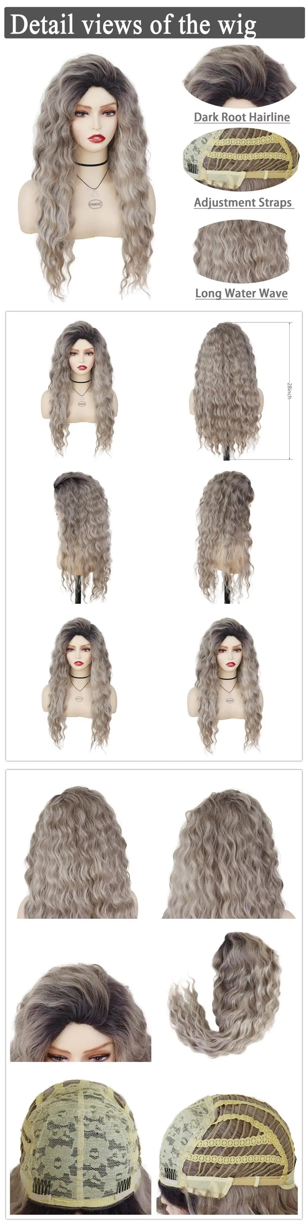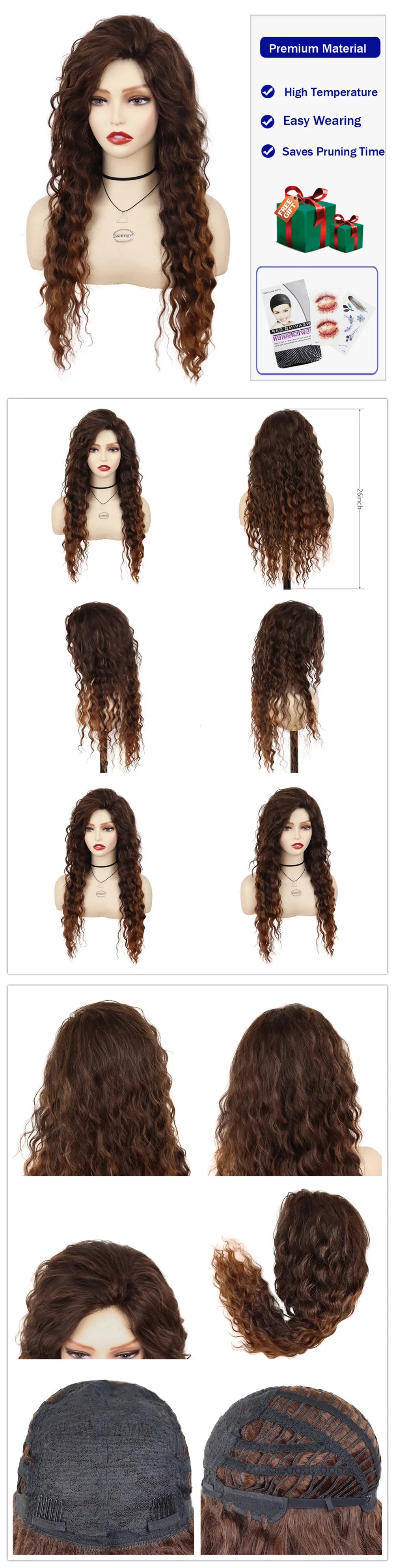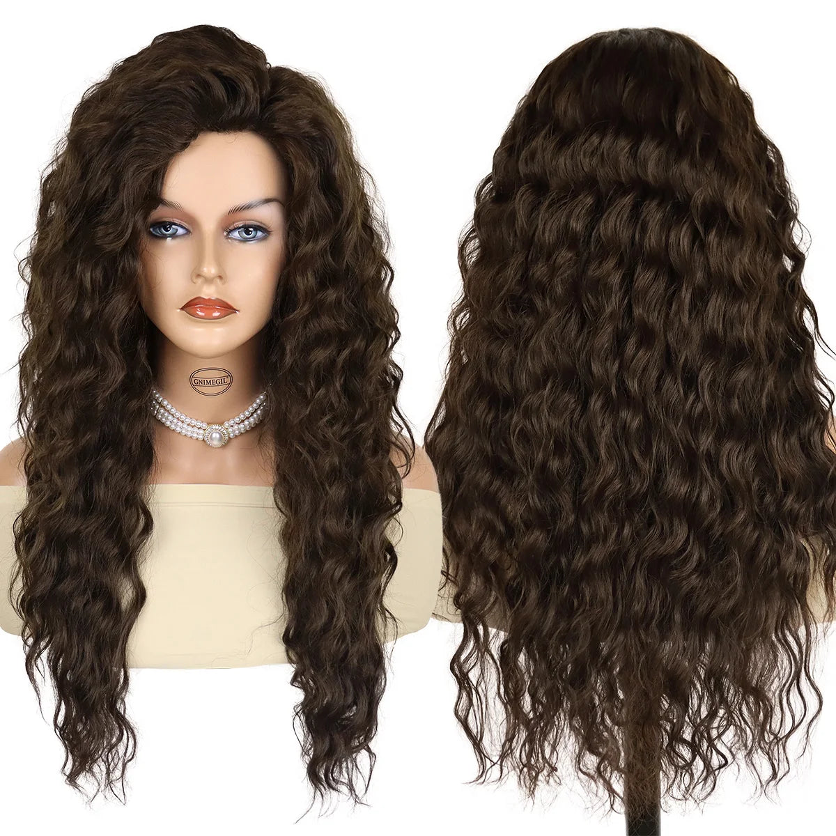GNIMEGIL 28 inches Free Part Hairline Long Curly Wavy Wig for Woman High Quality Synthetic Hair Water Wave Hairstyles Brown Roots Ombre Blonde Fluffy Costume Party Wig Drag Queen Cosplay Wig for Girls Good Natural Looking Wigs on Clearance Sale ( Come with 2pcs Tattoo stickers + 1pcs Wig Cap Free)